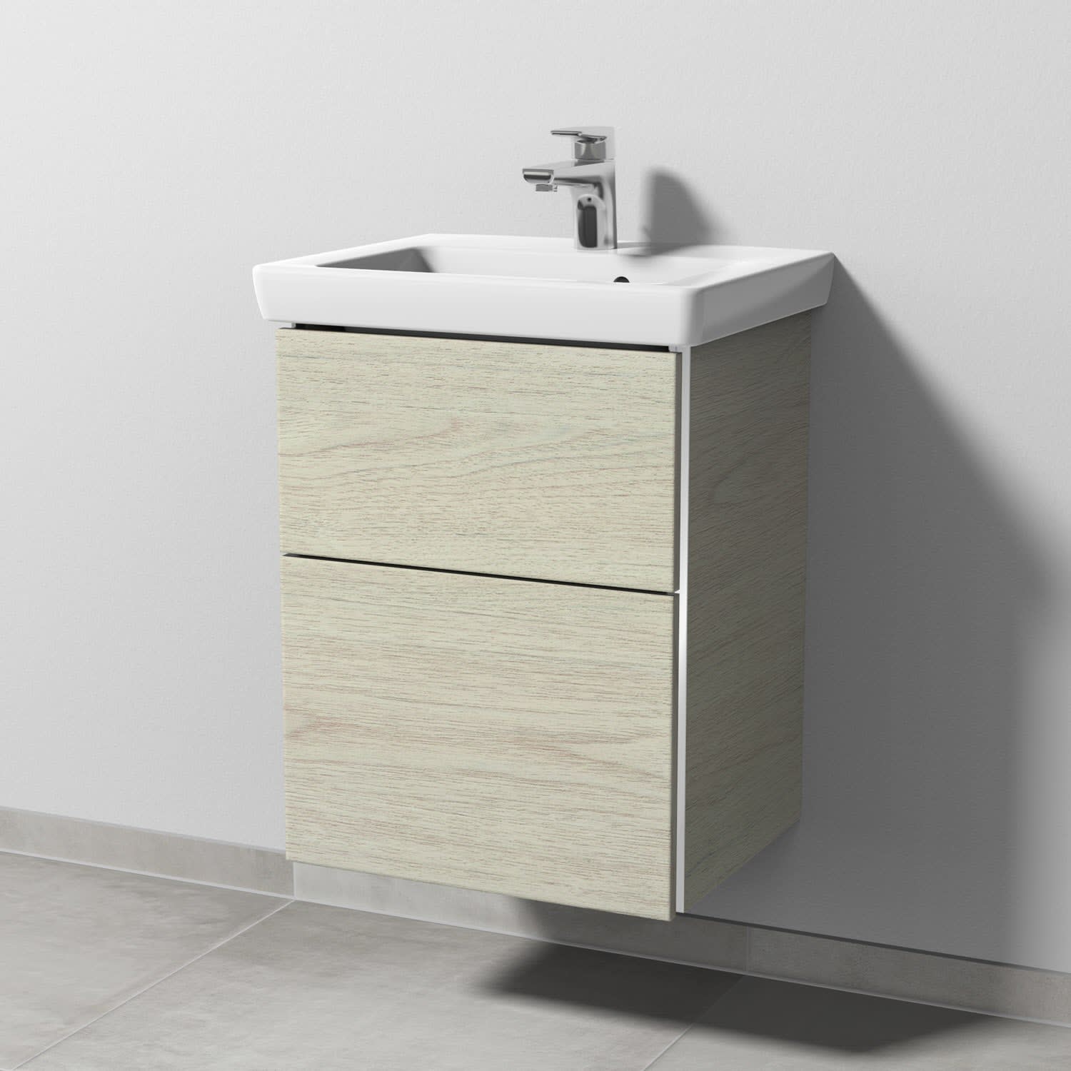 Sanipa 3way Waschtischunterbau für Keramik-Waschtisch Subway 2.0 50 cm, 2 Auszüge mit Griffleisten