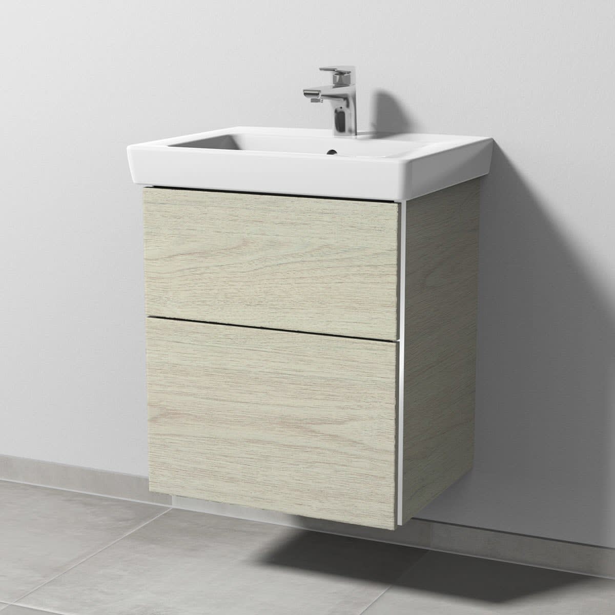 Sanipa 3way Waschtischunterbau für Keramik-Waschtisch Subway 2.0 55 cm, 2 Auszüge mit Griffleisten