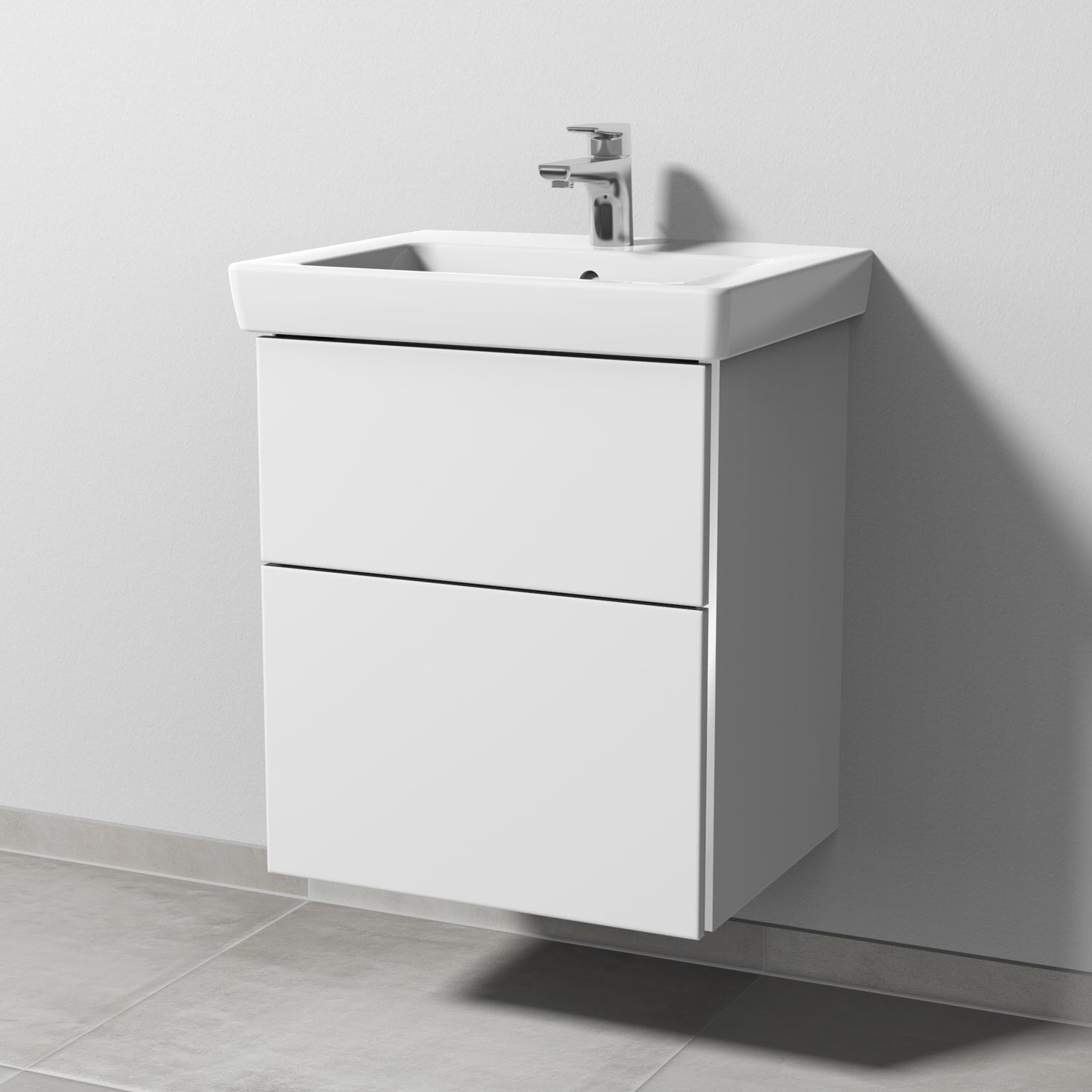 Sanipa 3way Waschtischunterbau für Keramik-Waschtisch Subway 2.0 55 cm, 2 Auszüge mit Griffleisten