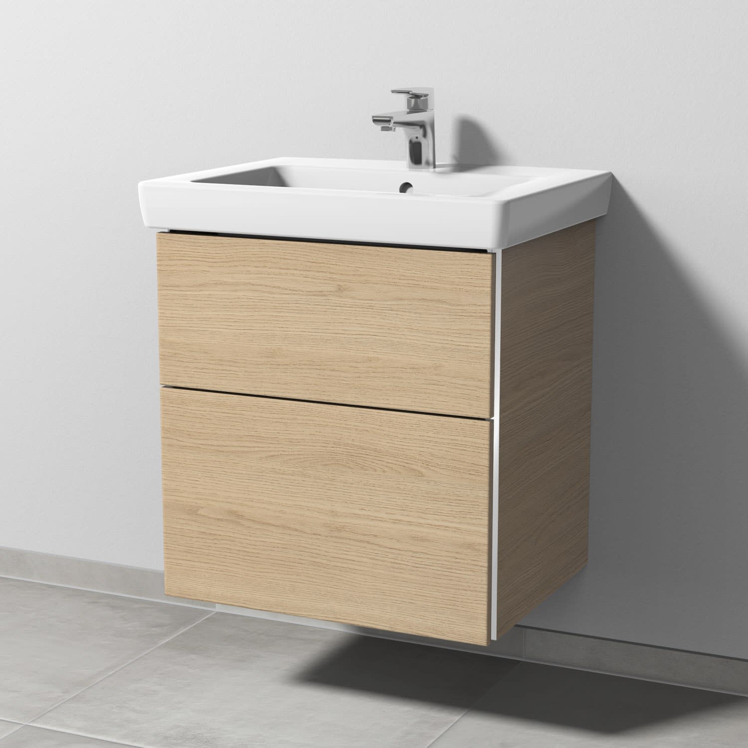Sanipa 3way Waschtischunterbau für Keramik-Waschtisch Subway 2.0 60 cm, 2 Auszüge mit Griffleisten
