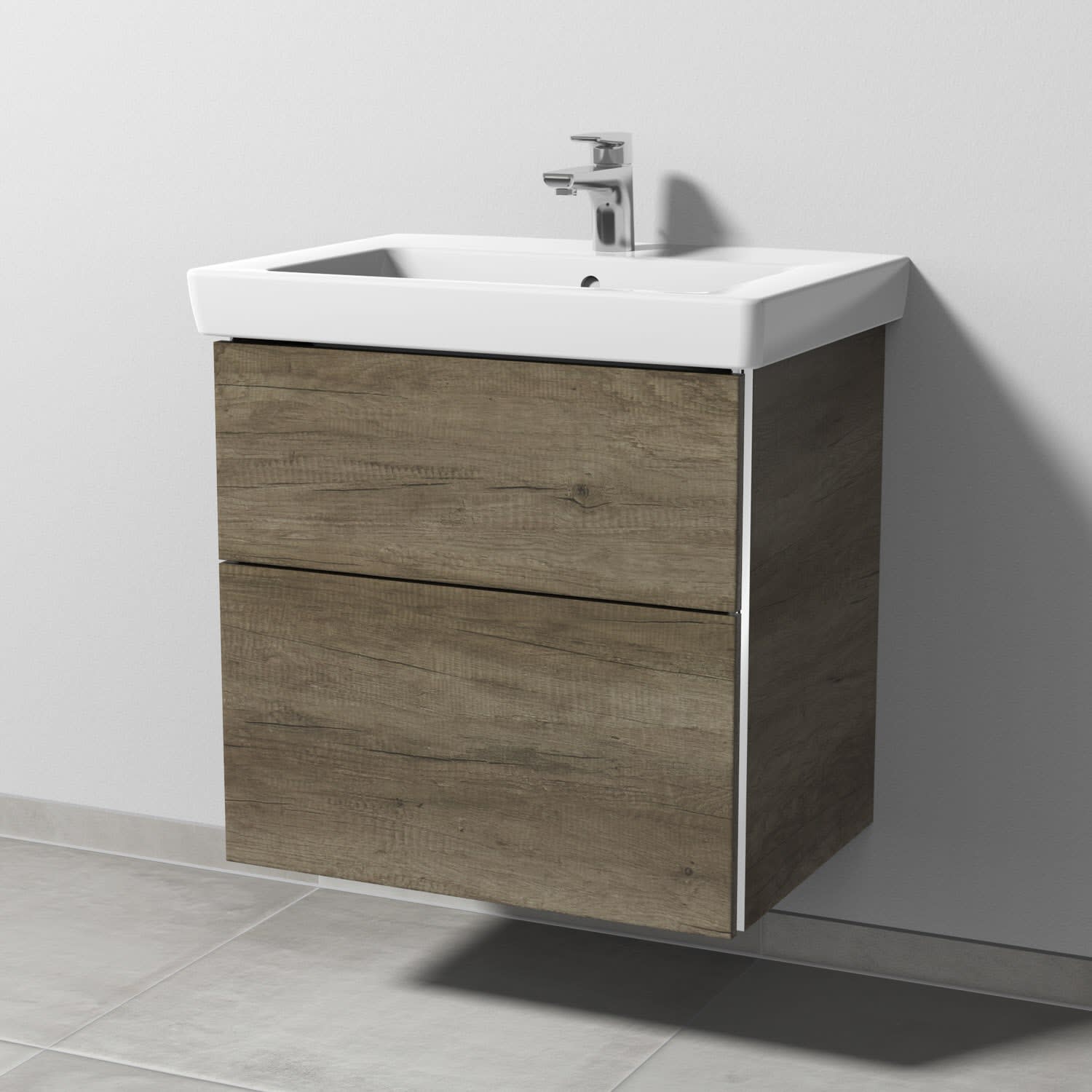 Sanipa 3way Waschtischunterbau für Keramik-Waschtisch Subway 2.0 65 cm, 2 Auszüge mit Griffleisten