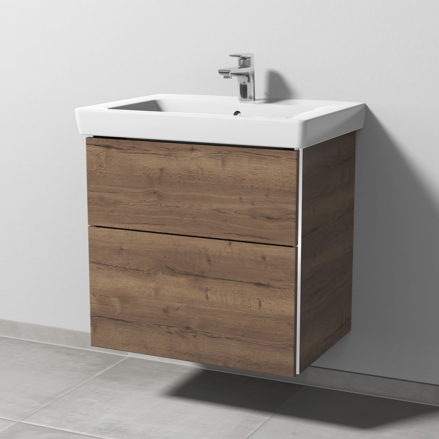 Sanipa 3way Waschtischunterbau für Keramik-Waschtisch Subway 2.0 65 cm, 2 Auszüge mit Griffleisten