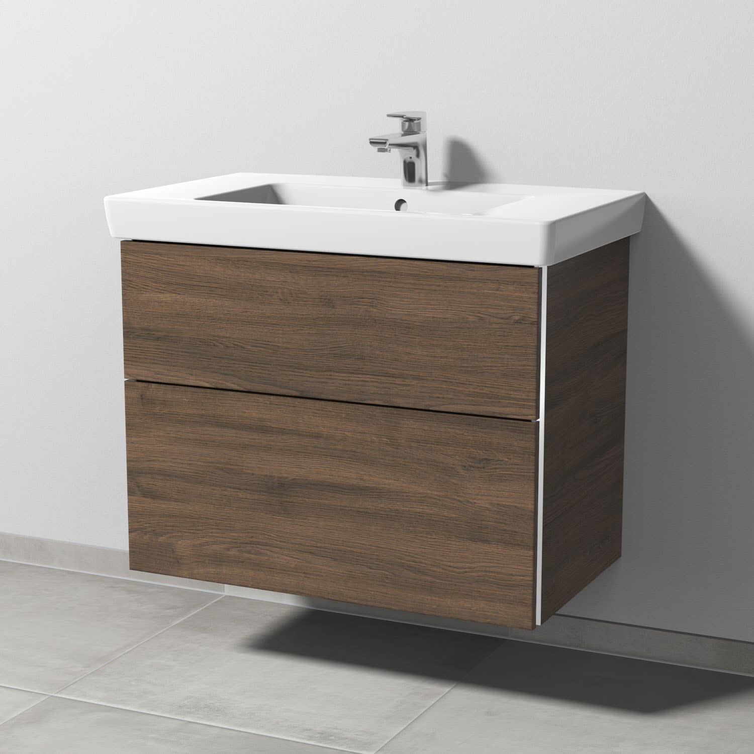 Sanipa 3way Waschtischunterbau für Keramik-Waschtisch Subway 2.0 80 cm, 2 Auszüge mit Griffleisten