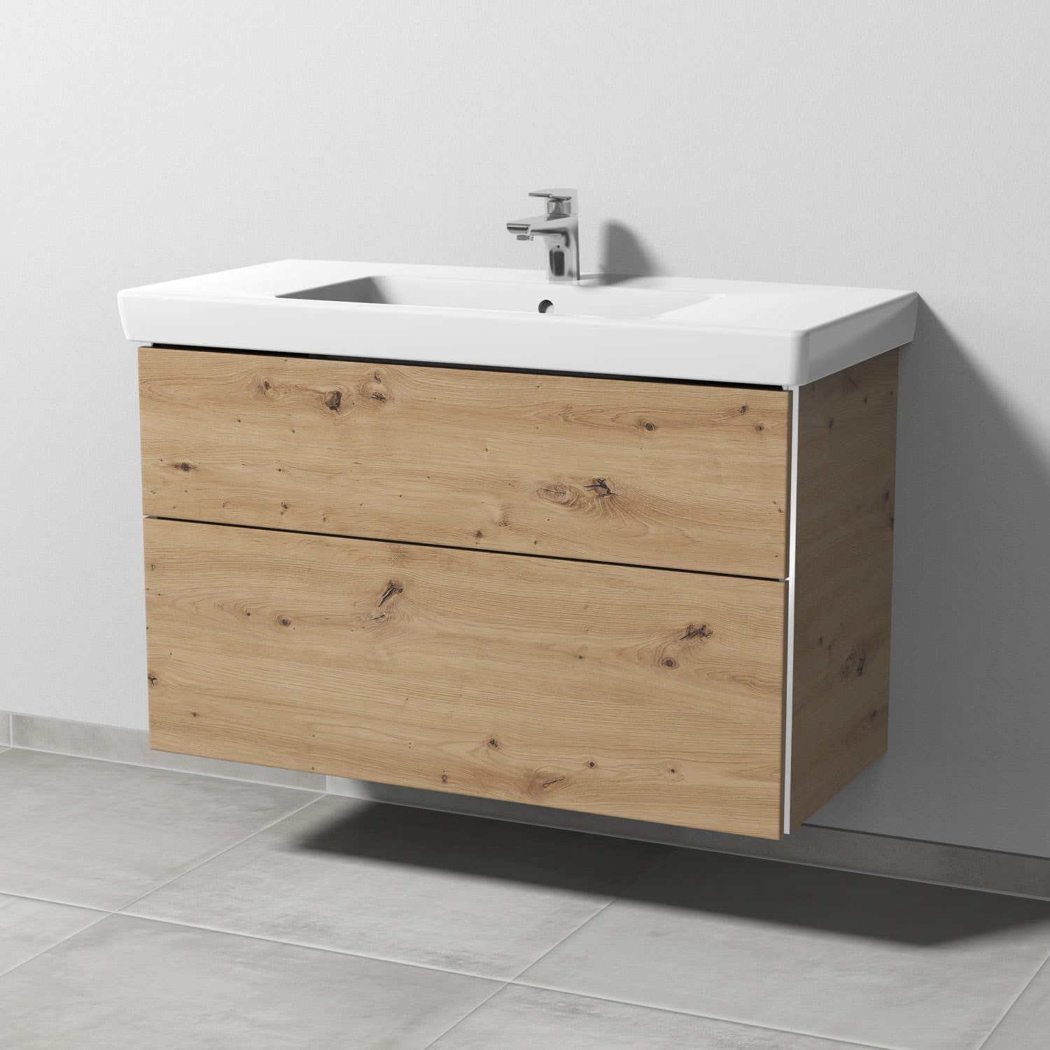 Sanipa 3way Waschtischunterbau für Keramik-Waschtisch Subway 2.0 100 cm, 2 Auszüge mit Griffleisten