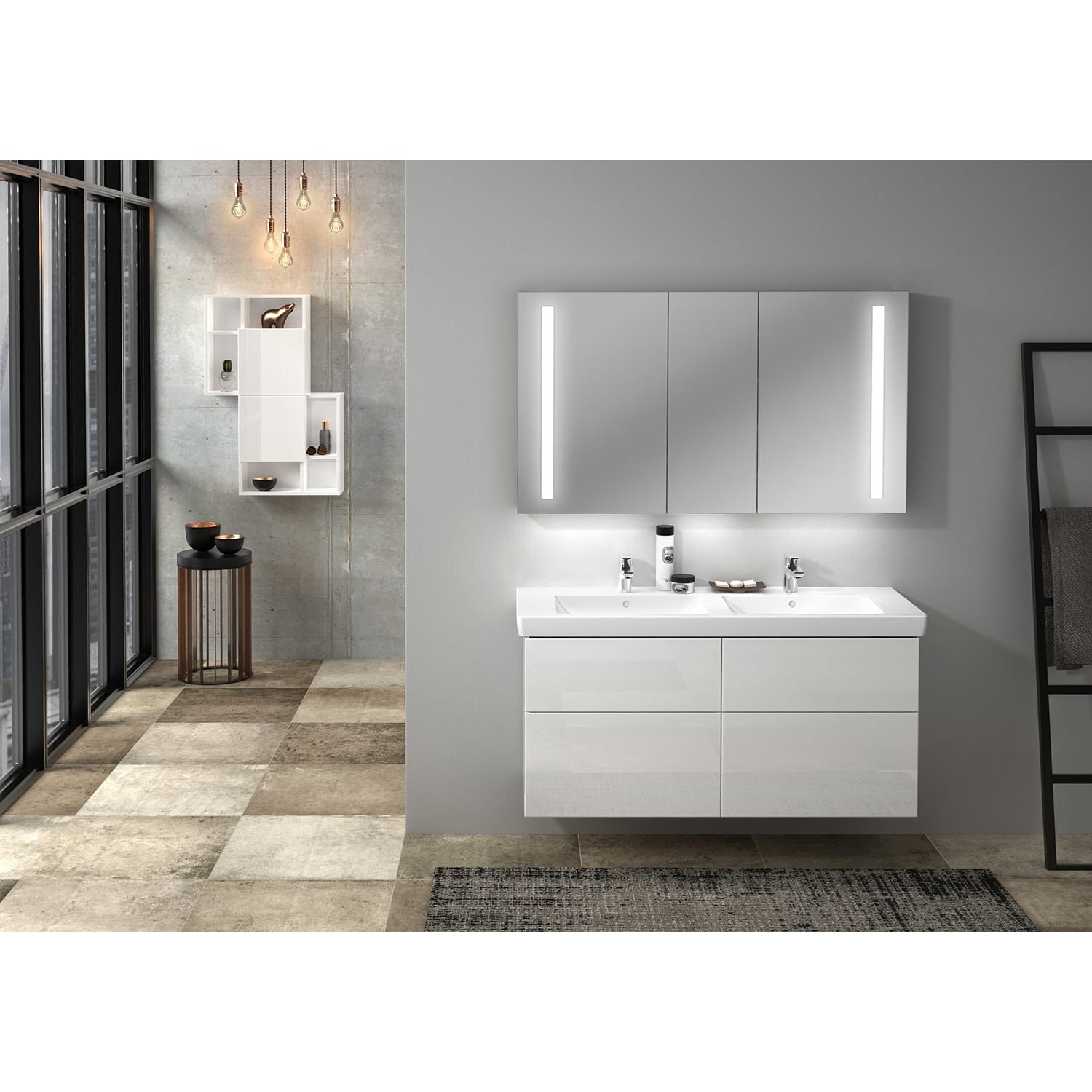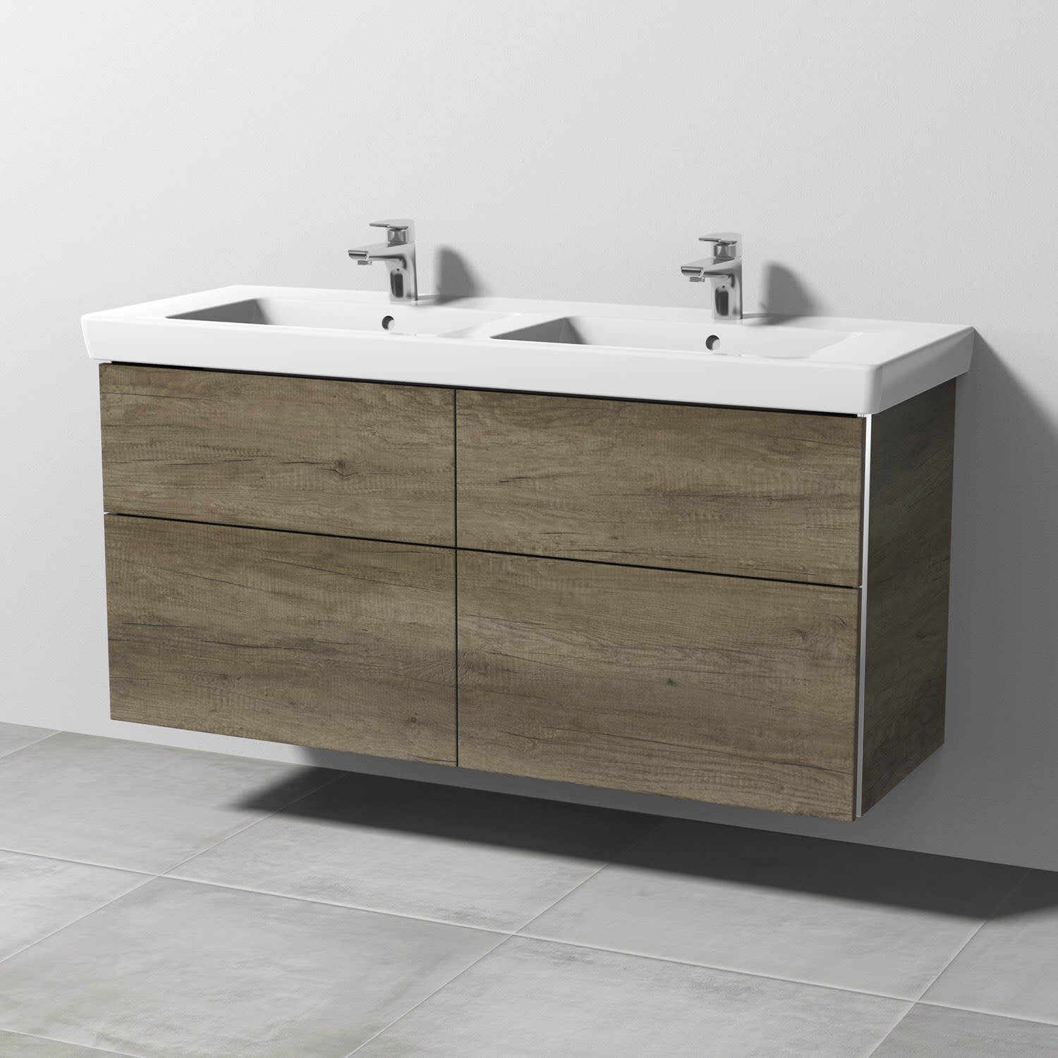 Sanipa 3way Waschtischunterbau für Keramik-Doppelwaschtisch Subway 2.0 130 cm, 4 Auszüge mit Griffleisten