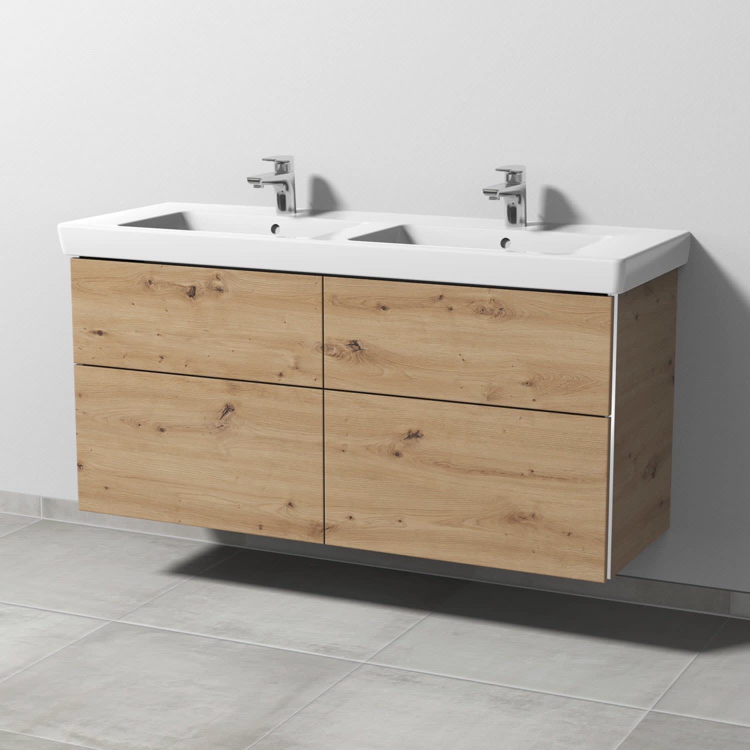 Sanipa 3way Waschtischunterbau für Keramik-Doppelwaschtisch Subway 2.0 130 cm, 4 Auszüge mit Griffleisten