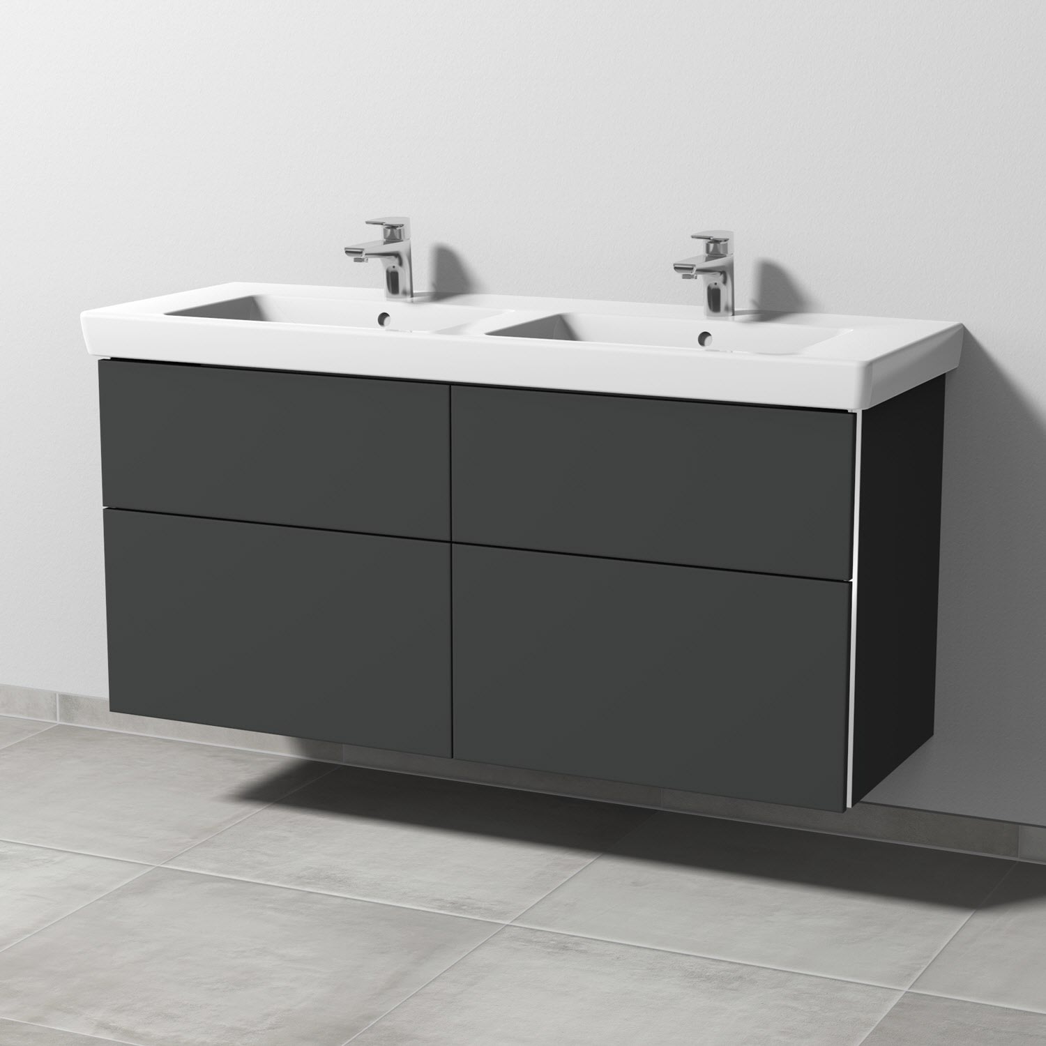 Sanipa 3way Waschtischunterbau für Keramik-Doppelwaschtisch Subway 2.0 130 cm, 4 Auszüge mit Griffleisten