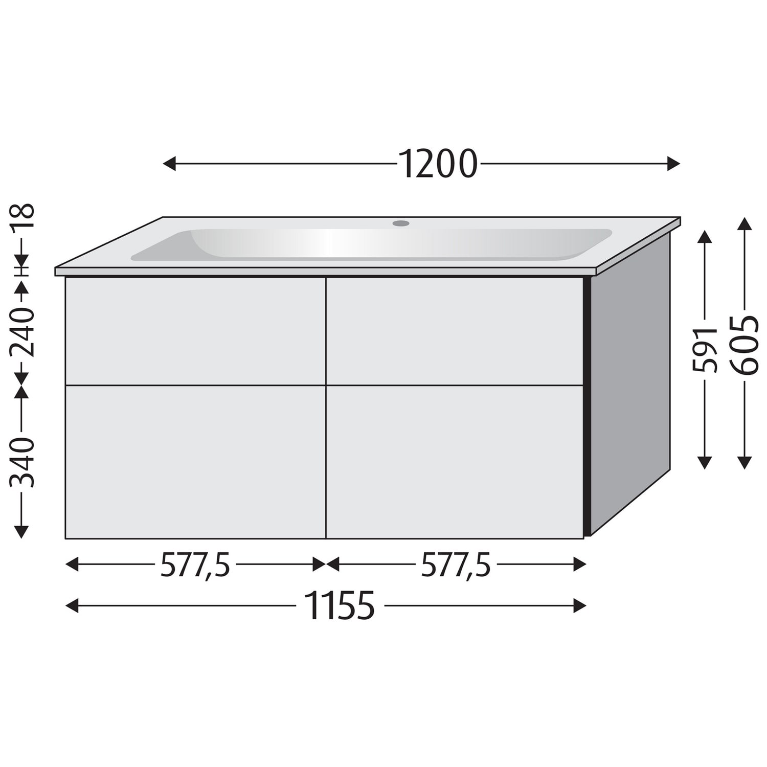 Sanipa 3way Waschtischunterbau für Venticello Keramik-Waschtisch 120 cm, 4 Auszüge