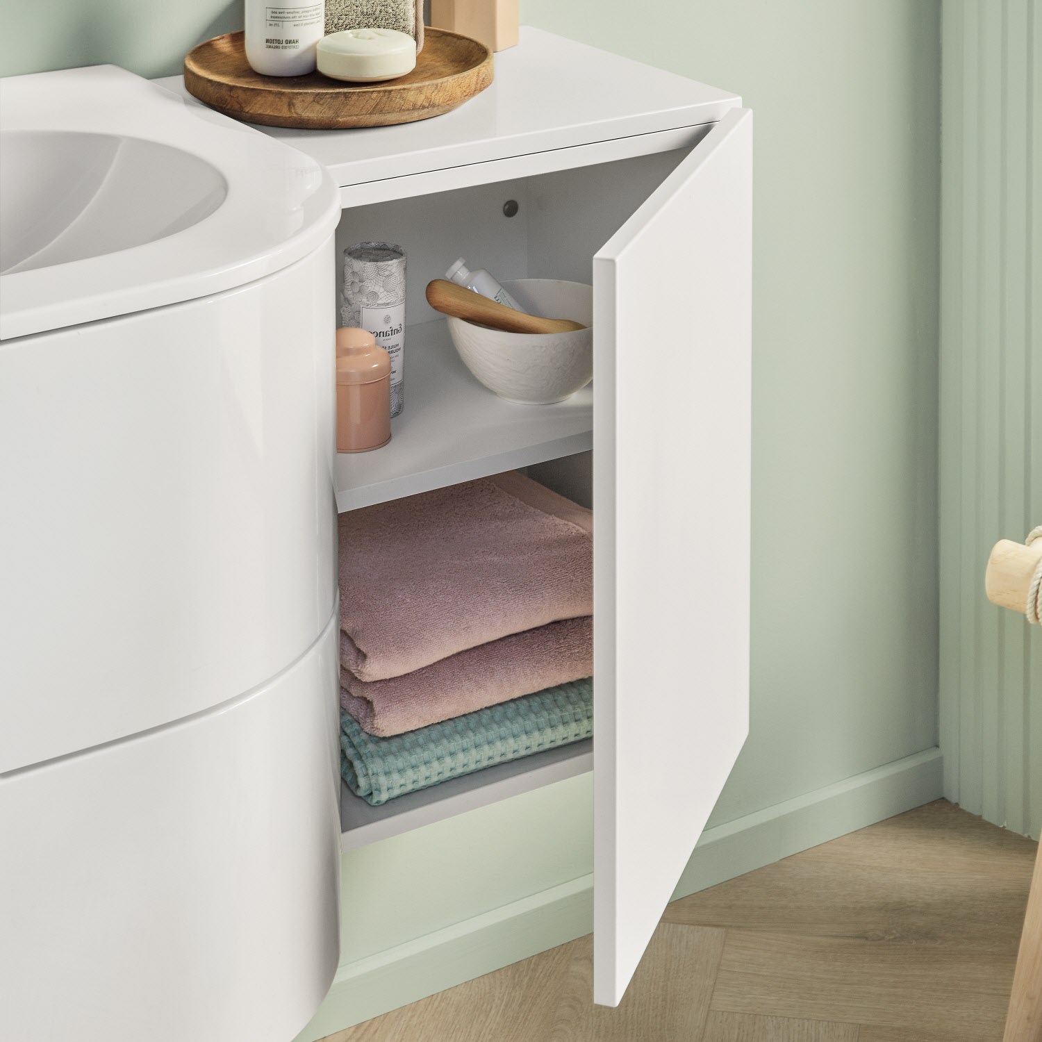 - für den direkten Anschluss an Ihr Waschtisch-Set – links, rechts oder auf beiden Seiten, auch als freie Variante planbar