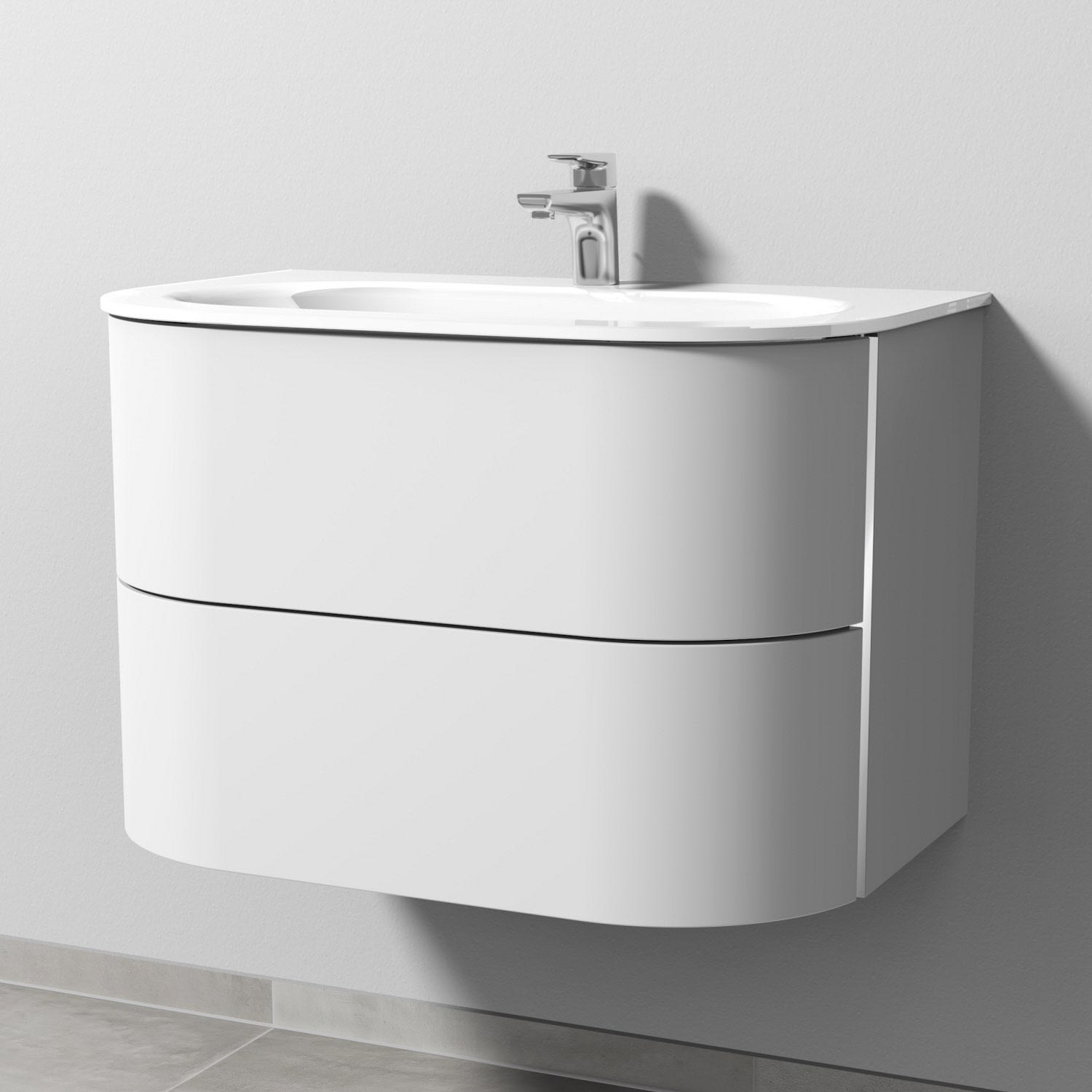 Sanipa 4balance Glas-Waschtisch + Waschtischunterbau 80 cm mit 2 Auszügen