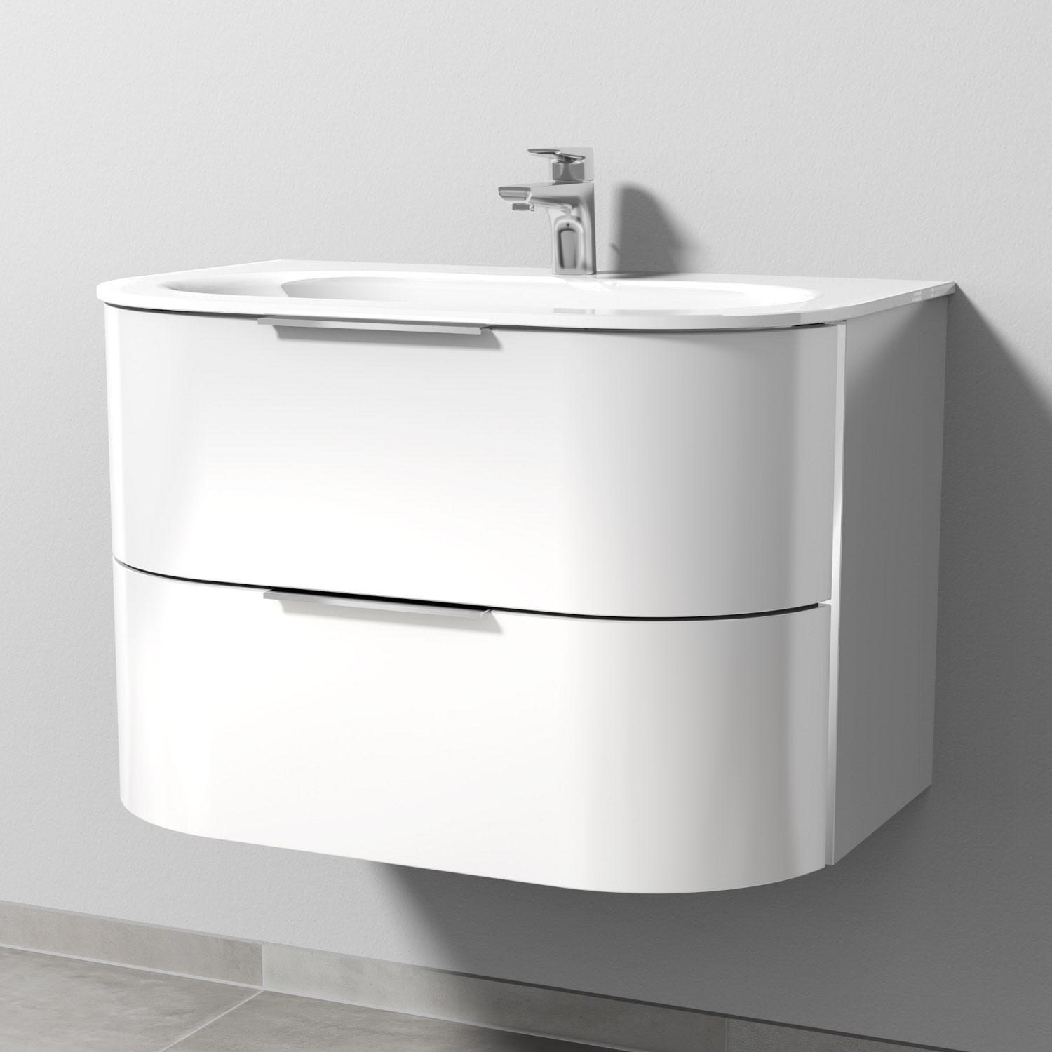 Sanipa 4balance Glas-Waschtisch + Waschtischunterbau 80 cm mit 2 Auszügen, Griff