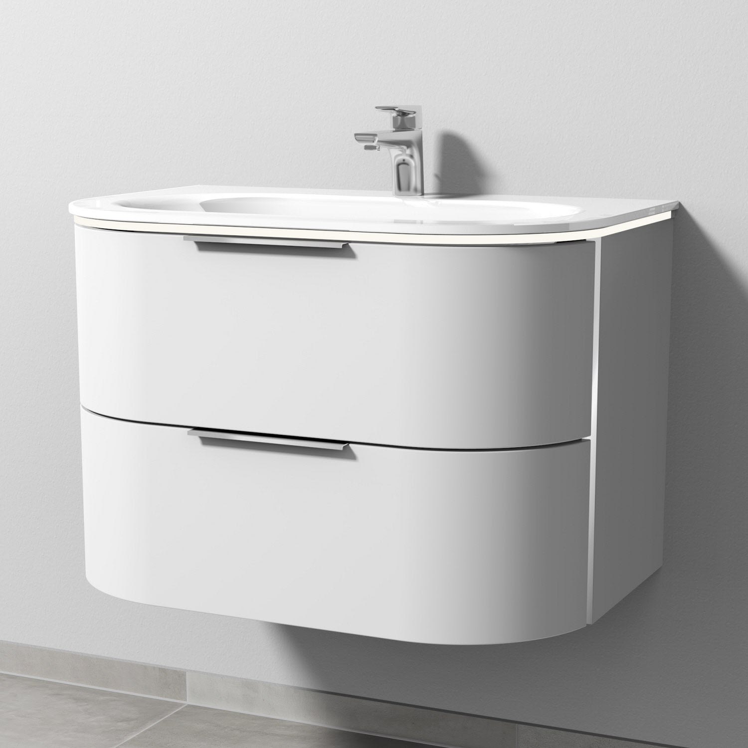 Sanipa 4balance Glas-Waschtisch + Waschtischunterbau 80 cm mit 2 Auszügen, Griff, LED