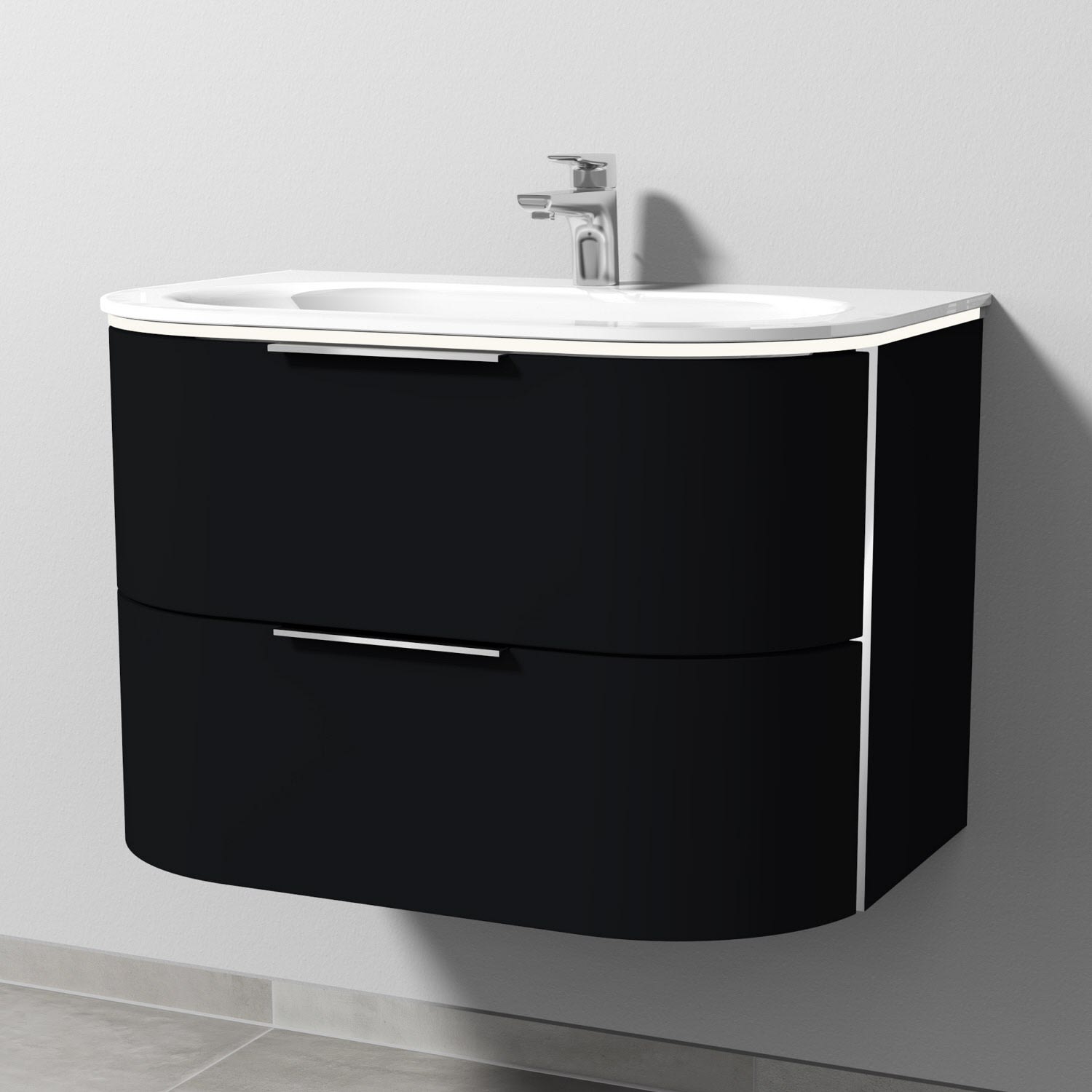 Sanipa 4balance Glas-Waschtisch + Waschtischunterbau 80 cm mit 2 Auszügen, Griff, LED