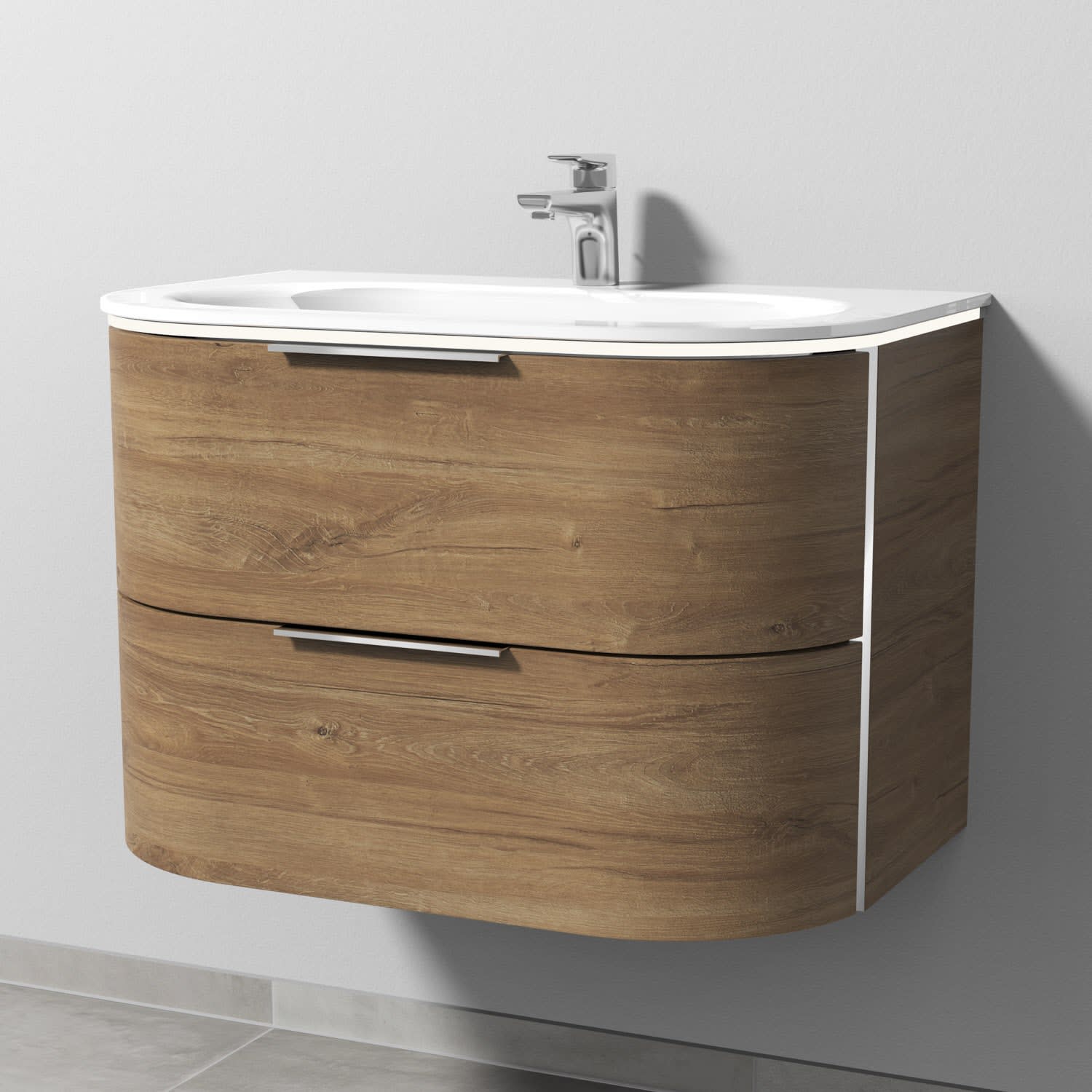 Sanipa 4balance Glas-Waschtisch + Waschtischunterbau 80 cm mit 2 Auszügen, Griff, LED