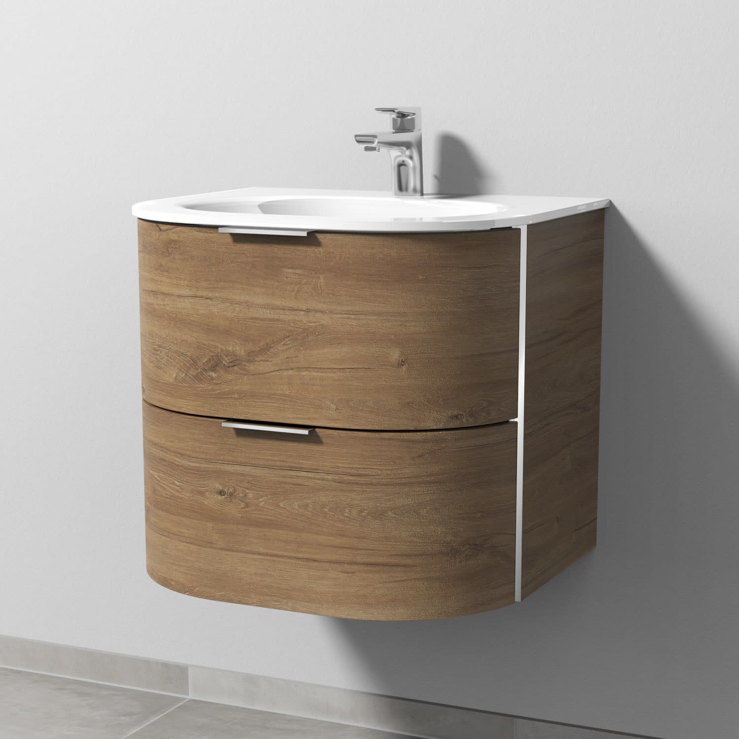 Sanipa 4balance Glas-Waschtisch + Waschtischunterbau 60 cm mit 2 Auszügen, Griff