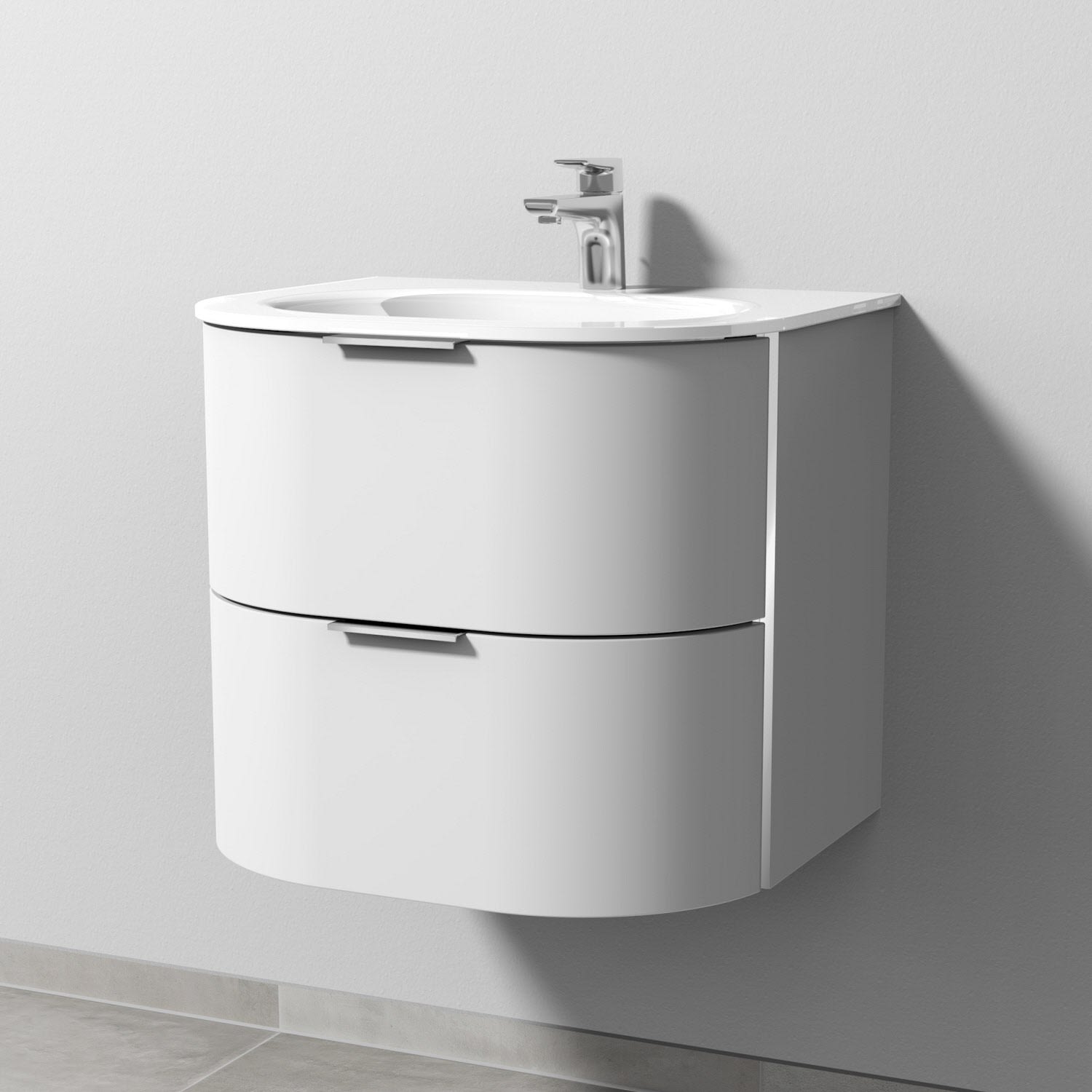 Sanipa 4balance Glas-Waschtisch + Waschtischunterbau 60 cm mit 2 Auszügen, Griff
