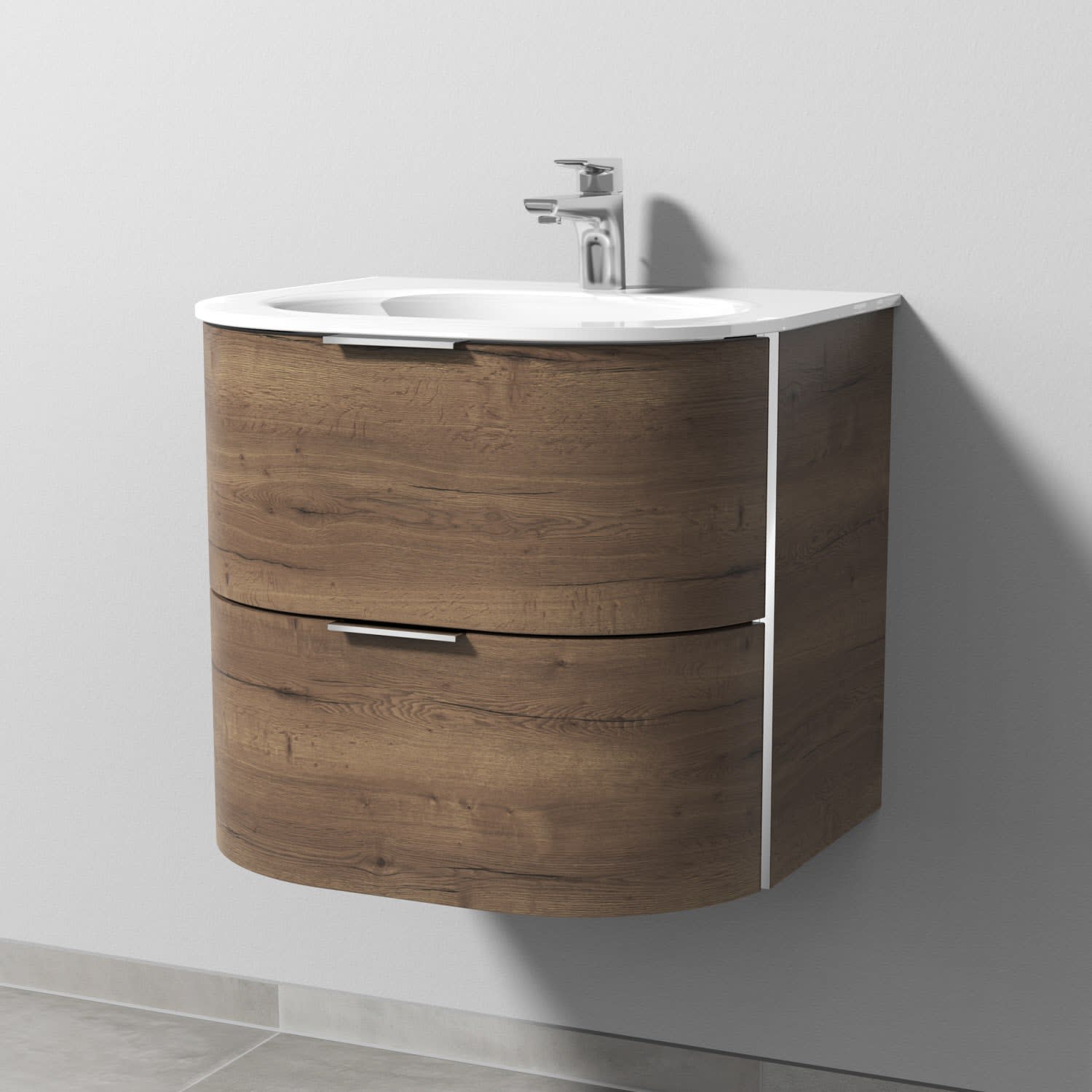 Sanipa 4balance Glas-Waschtisch + Waschtischunterbau 60 cm mit 2 Auszügen, Griff