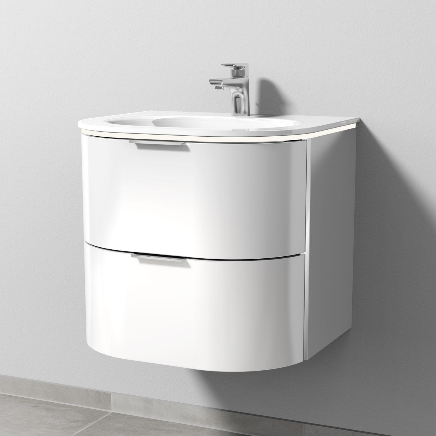 Sanipa 4balance Glas-Waschtisch + Waschtischunterbau 60 cm mit 2 Auszügen, Griff, LED
