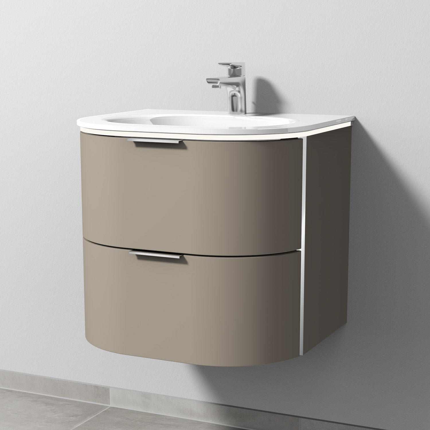 Sanipa 4balance Glas-Waschtisch + Waschtischunterbau 60 cm mit 2 Auszügen, Griff, LED