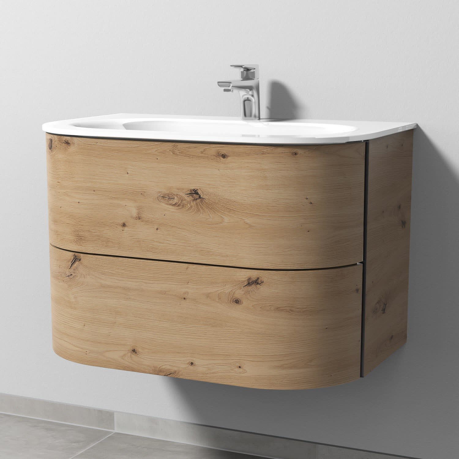 Sanipa 4balance Glas-Waschtisch + Waschtischunterbau 80 cm mit 2 Auszügen mit schwarzer Griffleiste