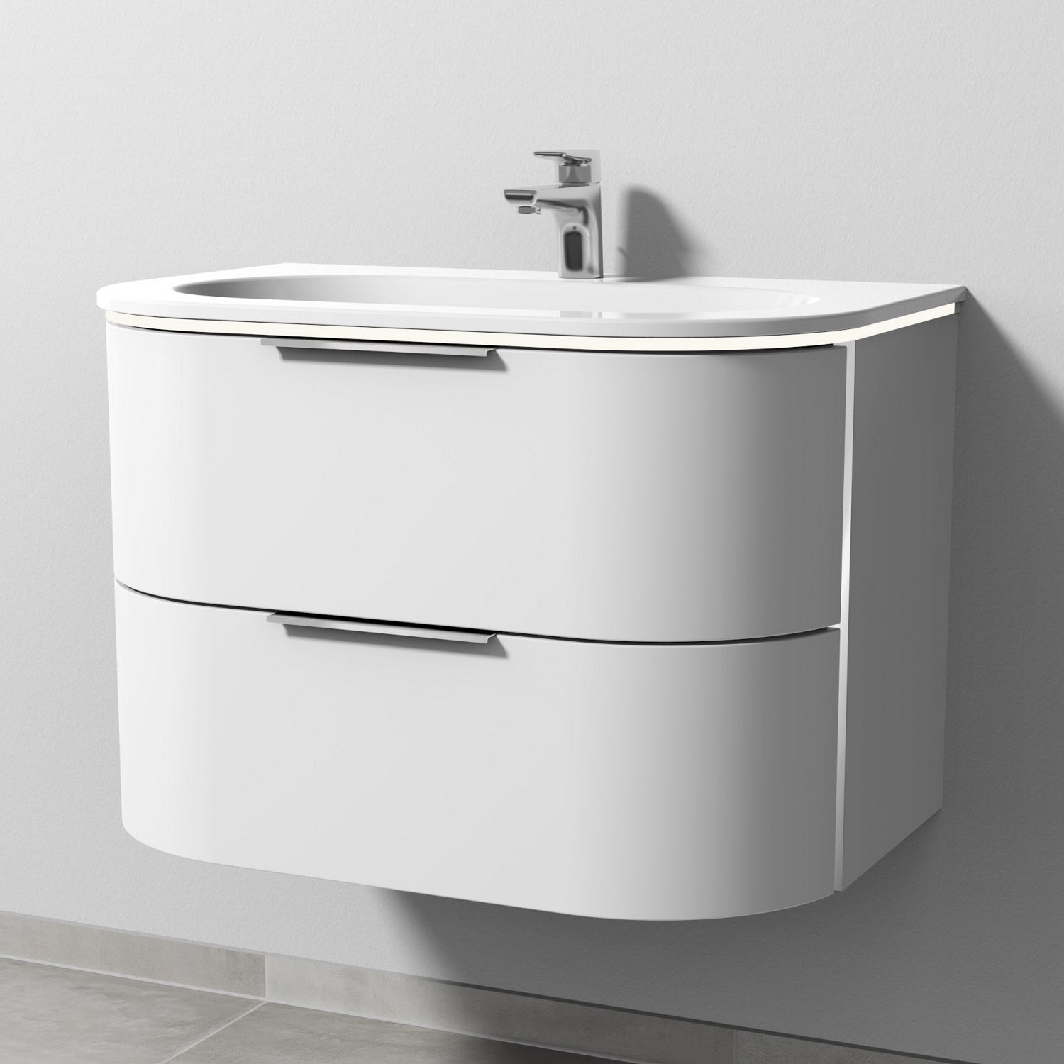 Sanipa 4balance Keramik-Waschtisch + Waschtischunterbau 80 cm mit 2 Auszügen, Griff, LED