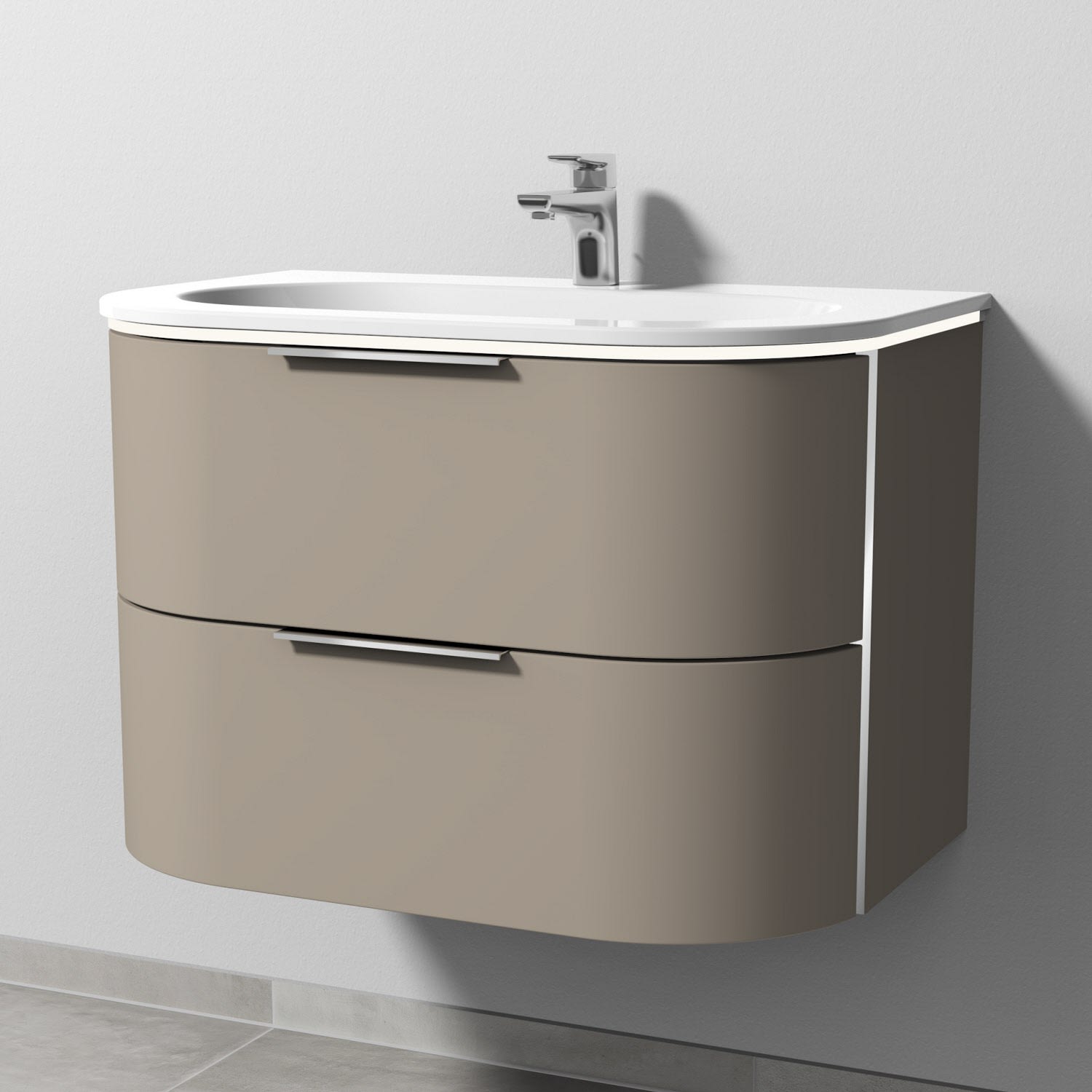 Sanipa 4balance Keramik-Waschtisch + Waschtischunterbau 80 cm mit 2 Auszügen, Griff, LED