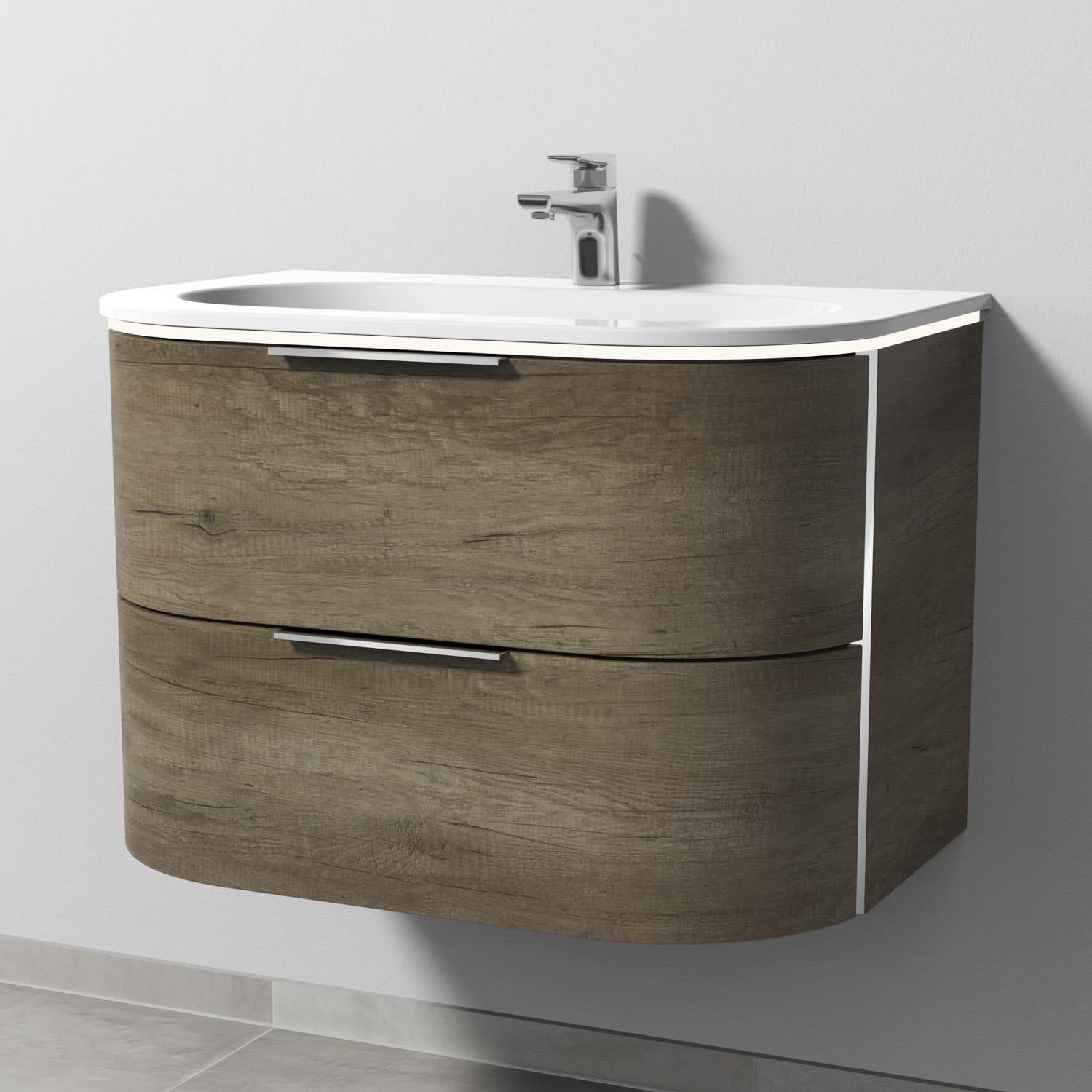 Sanipa 4balance Keramik-Waschtisch + Waschtischunterbau 80 cm mit 2 Auszügen, Griff, LED