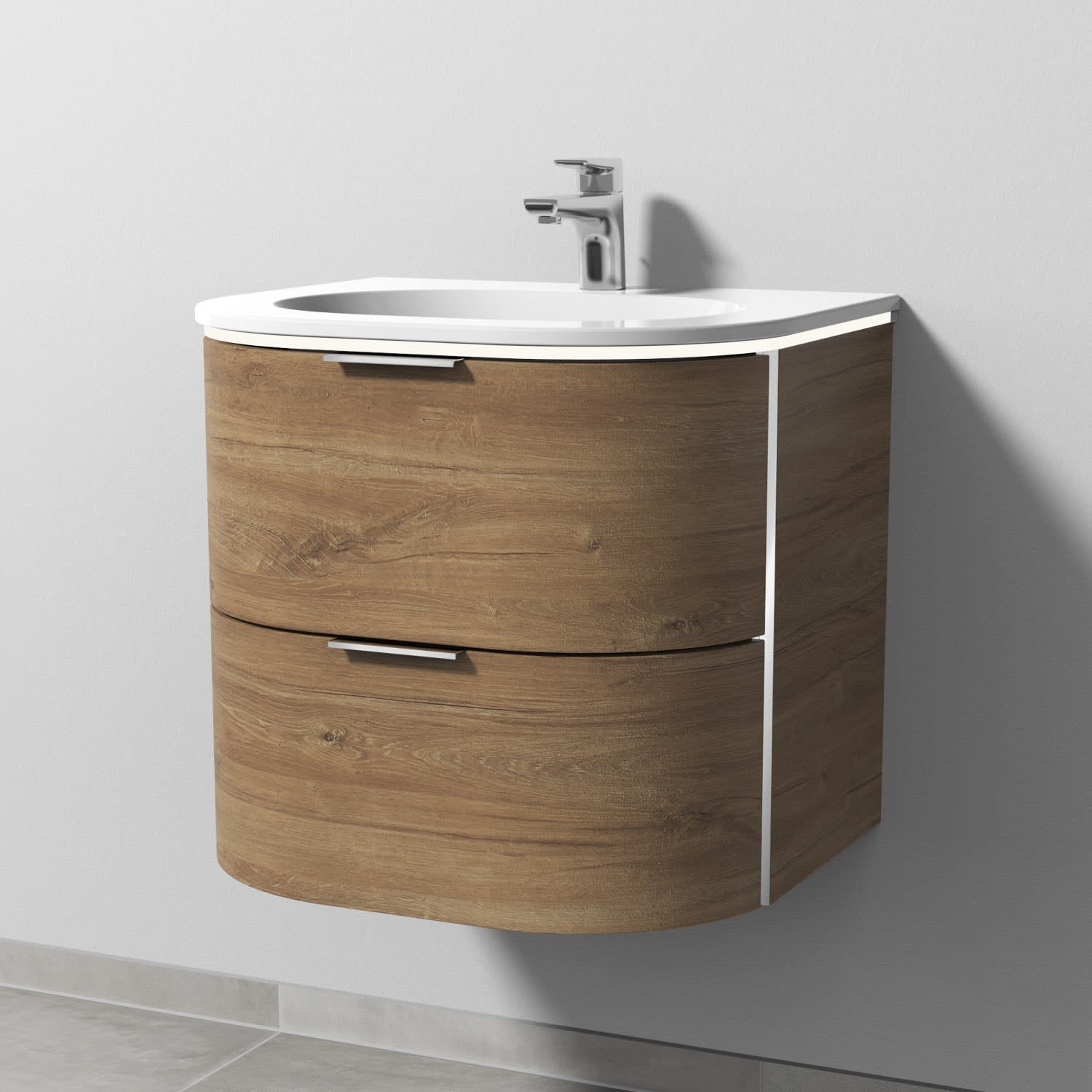 Sanipa 4balance Keramik-Waschtisch + Waschtischunterbau 60 cm mit 2 Auszügen, Griff, LED