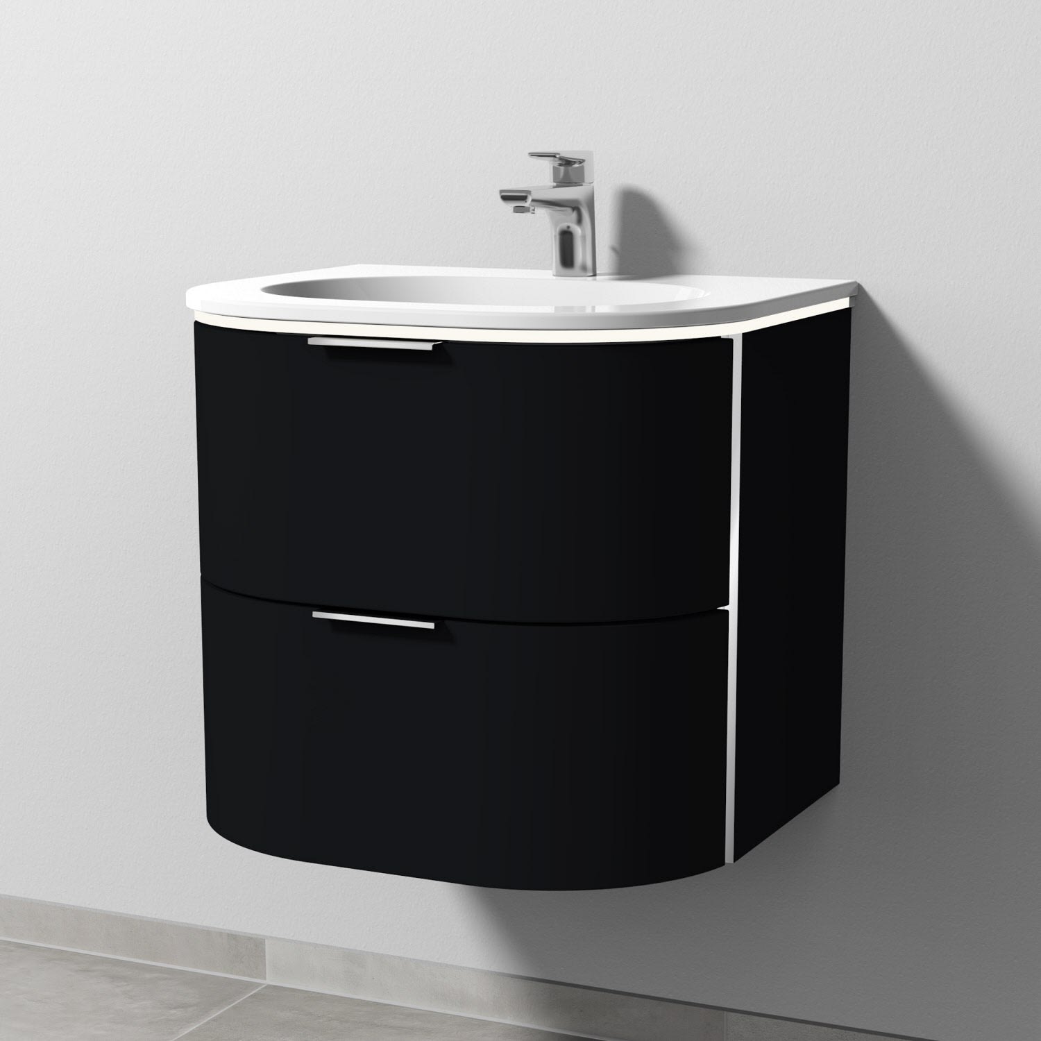 Sanipa 4balance Keramik-Waschtisch + Waschtischunterbau 60 cm mit 2 Auszügen, Griff, LED
