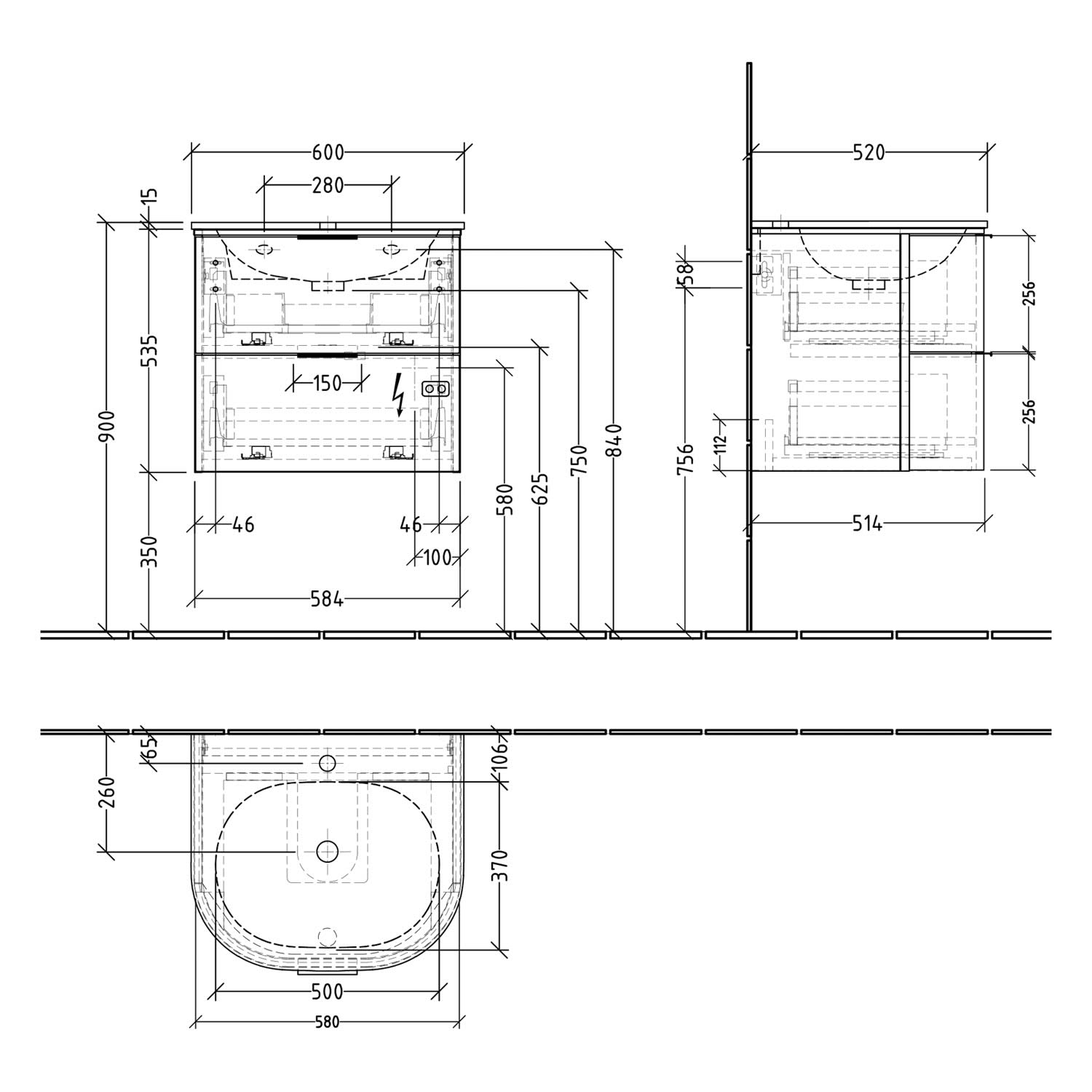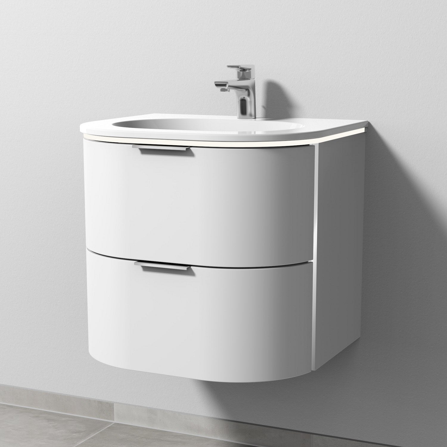 Sanipa 4balance Keramik-Waschtisch + Waschtischunterbau 60 cm mit 2 Auszügen, Griff, LED