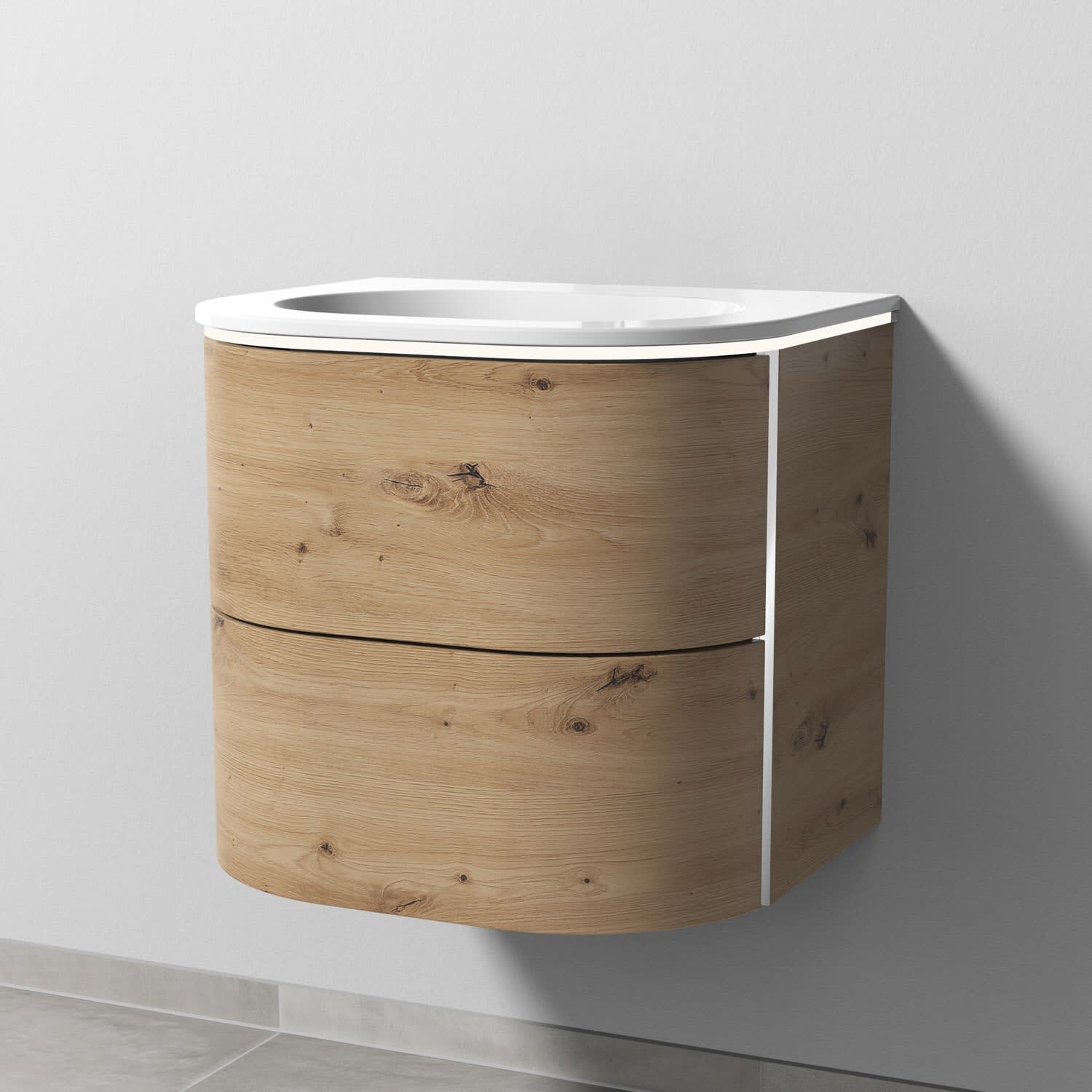 Sanipa 4balance Keramik-Waschtisch + Waschtischunterbau 60 cm mit 2 Auszügen, LED, OHNE Hahnloch