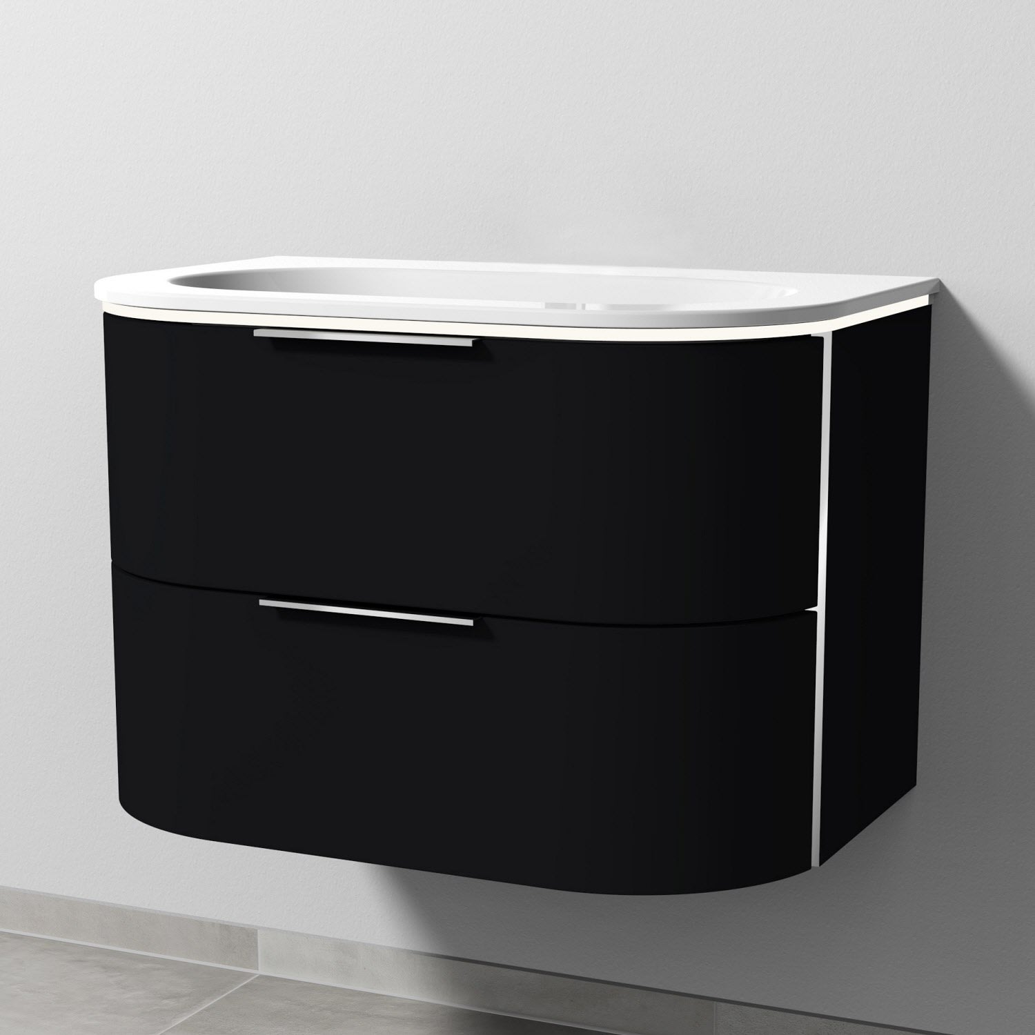 Sanipa 4balance Keramik-Waschtisch + Waschtischunterbau 80 cm mit 2 Auszügen, Griff, LED, OHNE Hahnloch