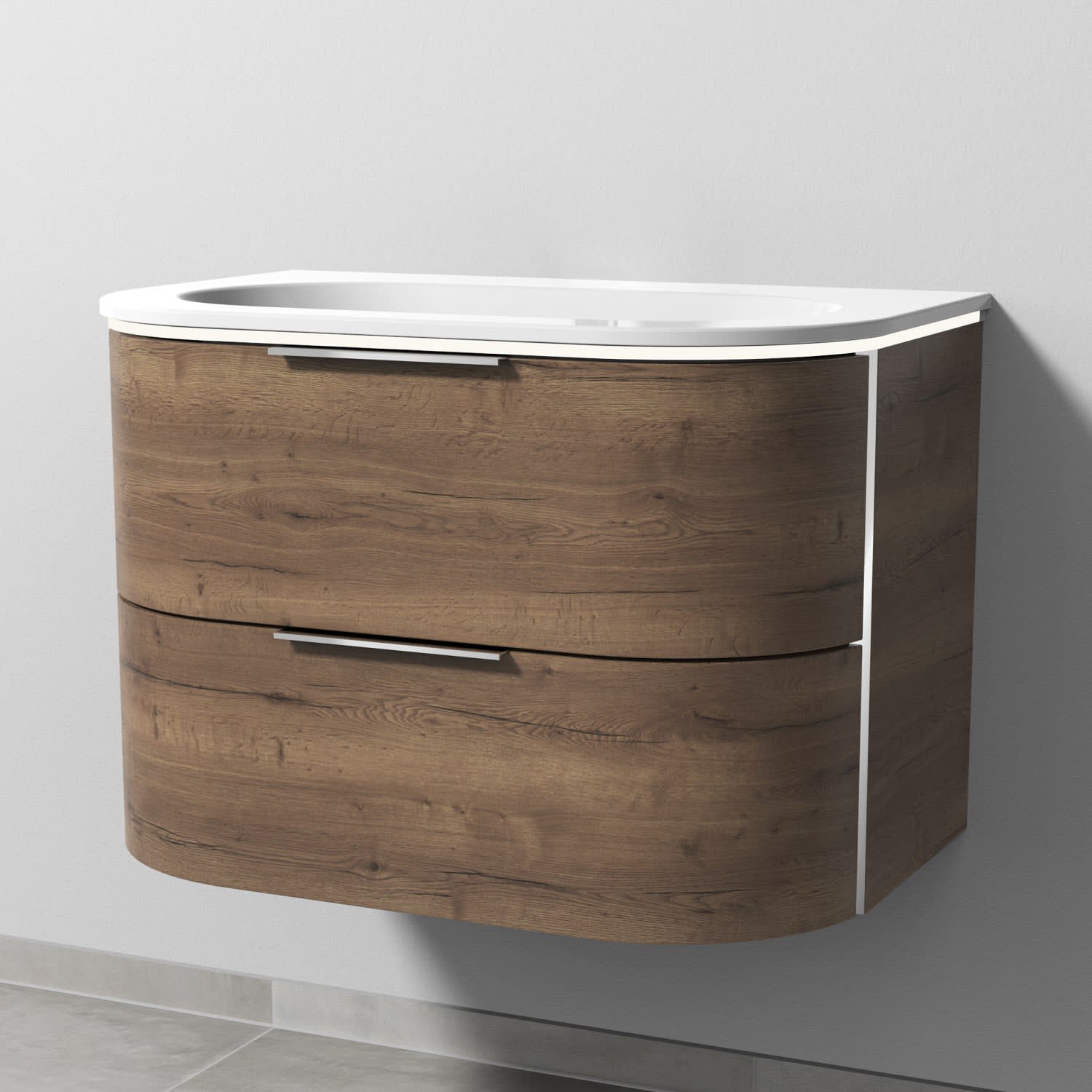Sanipa 4balance Keramik-Waschtisch + Waschtischunterbau 80 cm mit 2 Auszügen, Griff, LED, OHNE Hahnloch