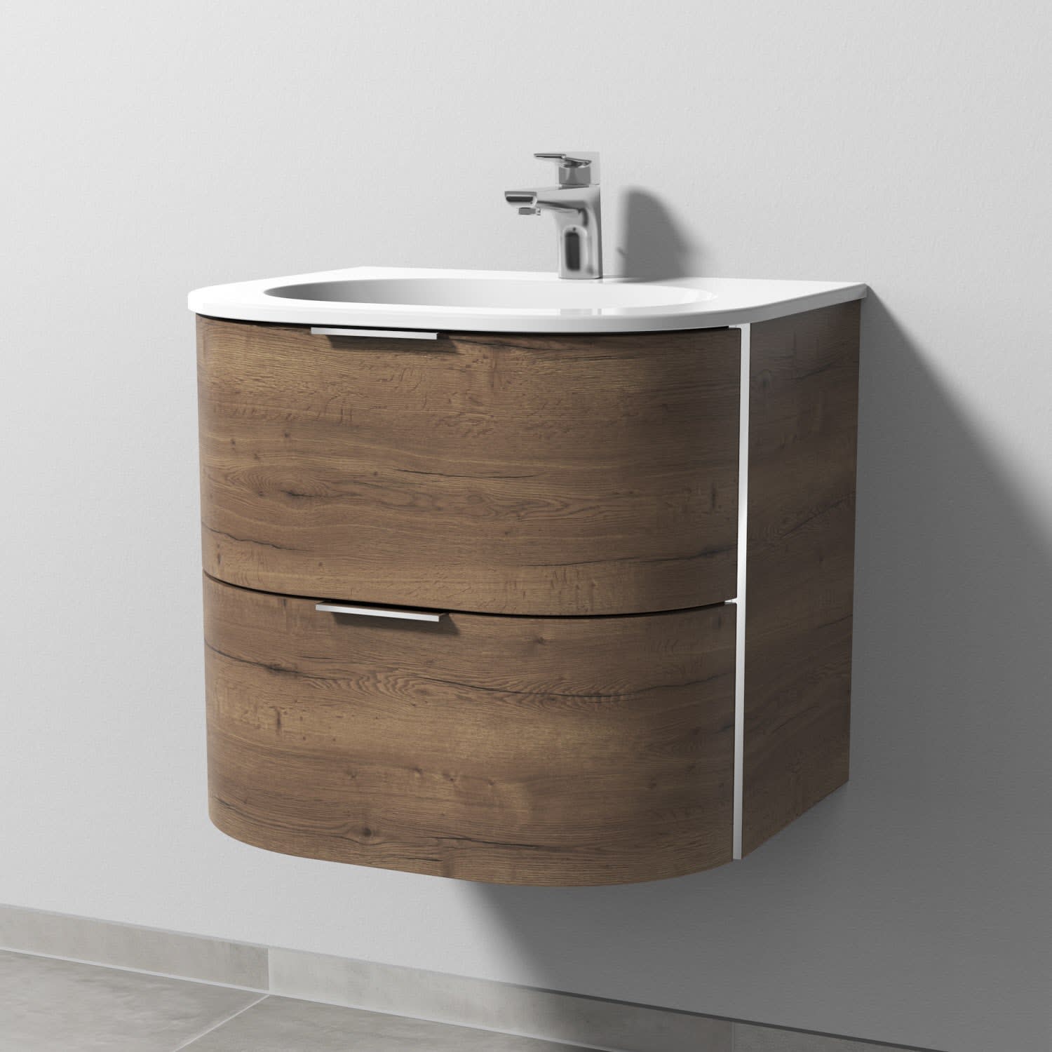 Sanipa 4balance Keramik-Waschtisch + Waschtischunterbau 60 cm mit 2 Auszügen, Griff schwarz