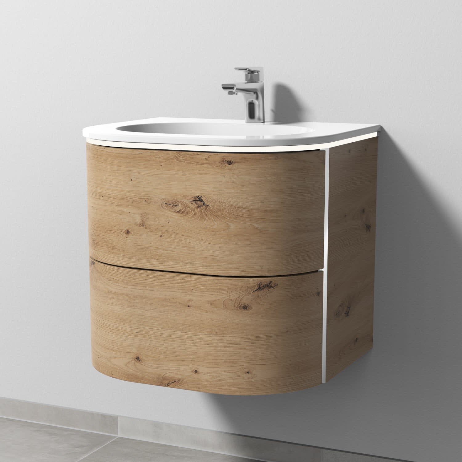 Sanipa 4balance Keramik-Waschtisch + Waschtischunterbau 60 cm mit 2 Auszügen Griffe schwarz, LED