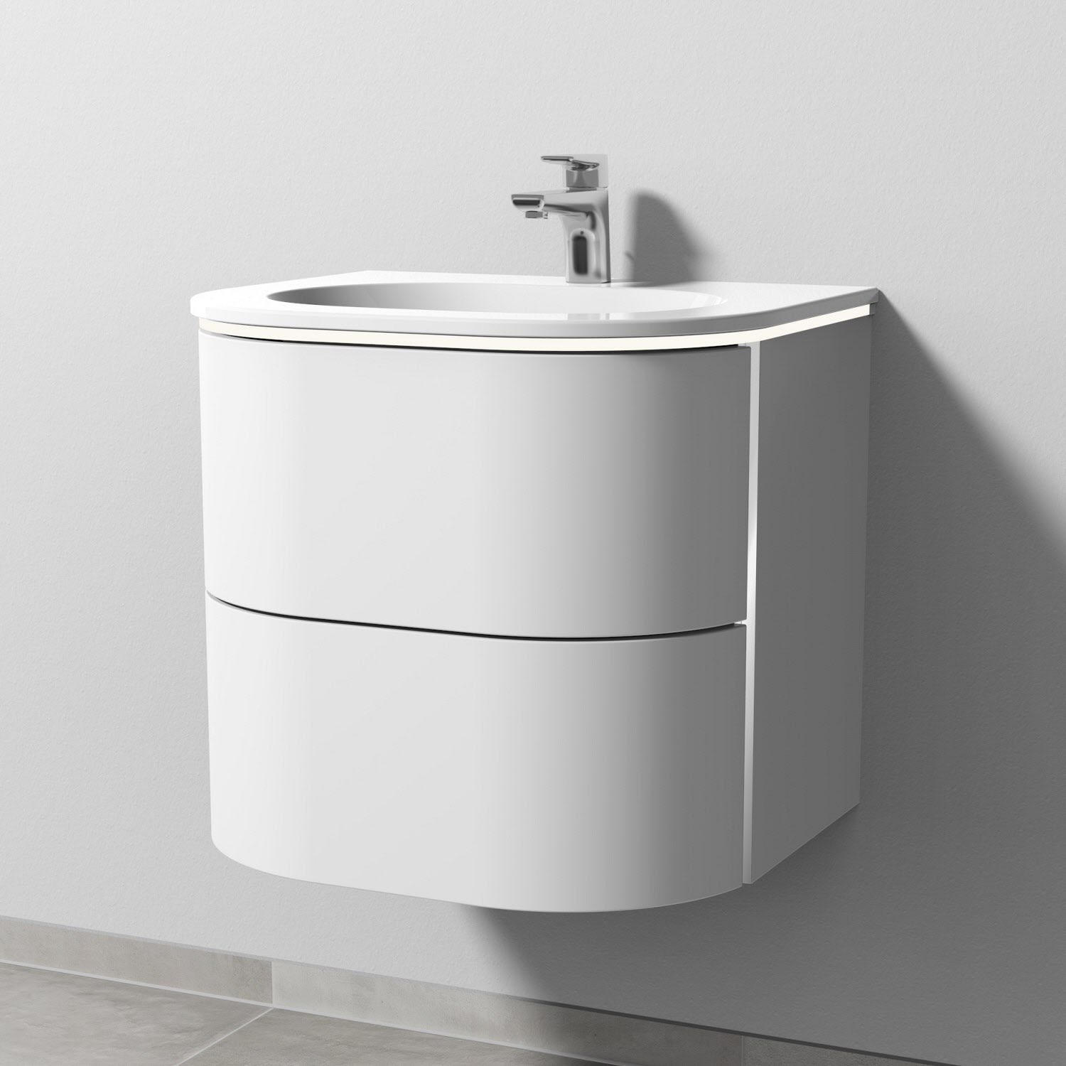 Sanipa 4balance Keramik-Waschtisch + Waschtischunterbau 60 cm mit 2 Auszügen Griffe schwarz, LED