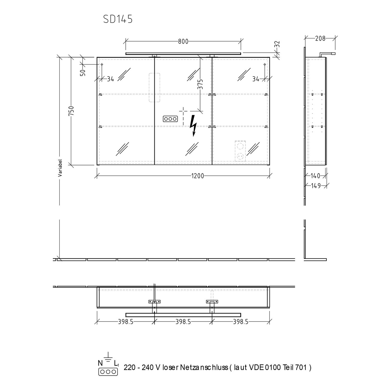 - Spiegeltürenbreite: 39,9 / 39,9 / 39,9 cm
