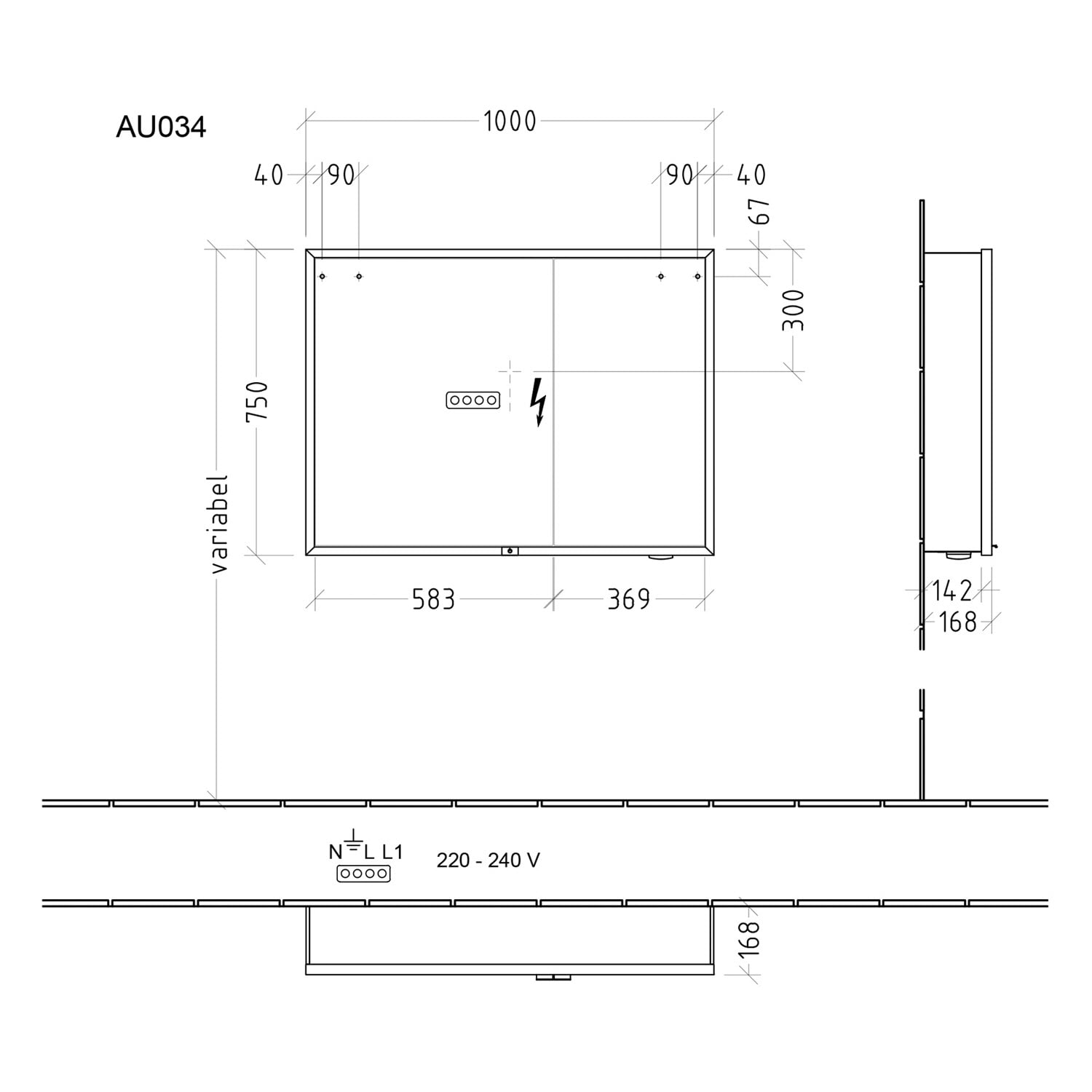 - Spiegeltürenbreite: 58,3 / 36,9 cm