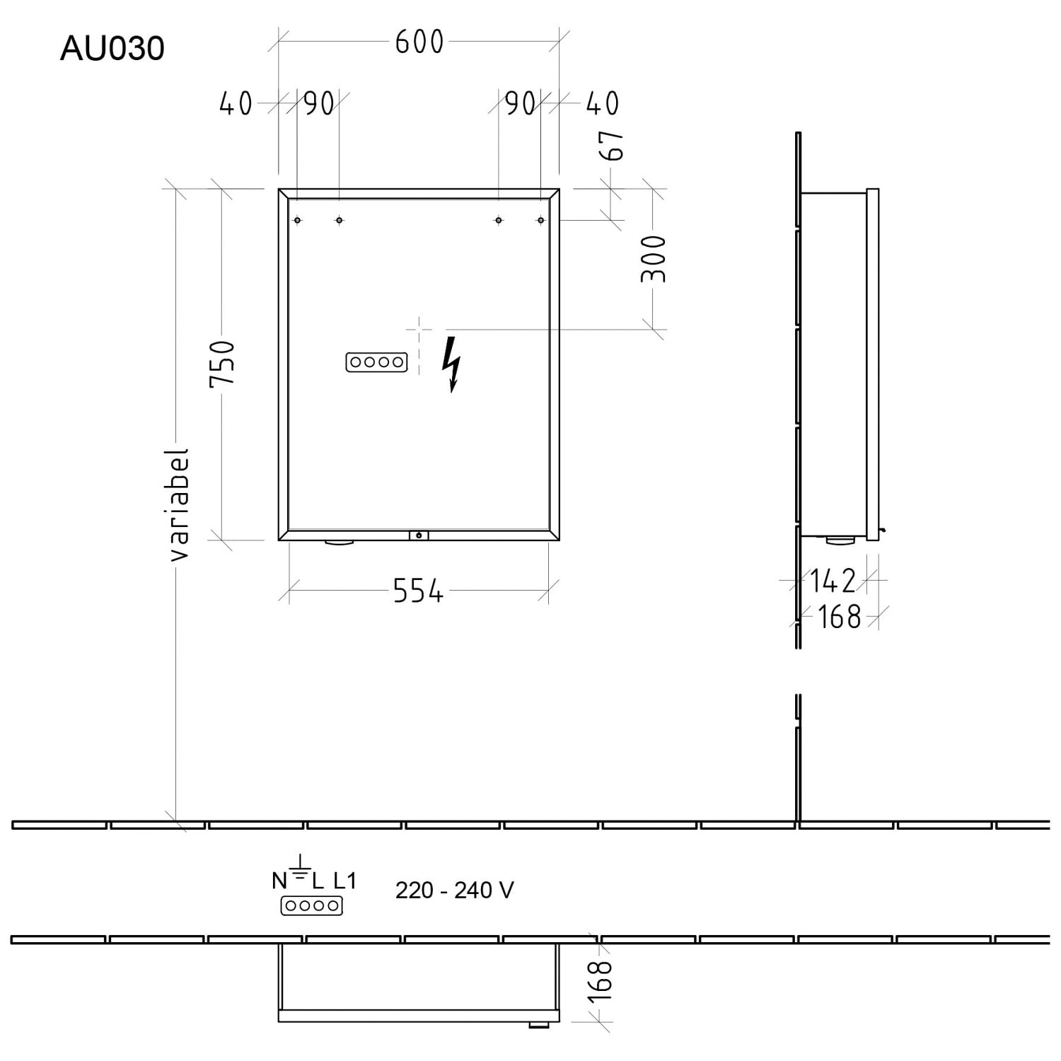 - durchgehende LED-Waschplatzbeleuchtung 1,80 Watt
