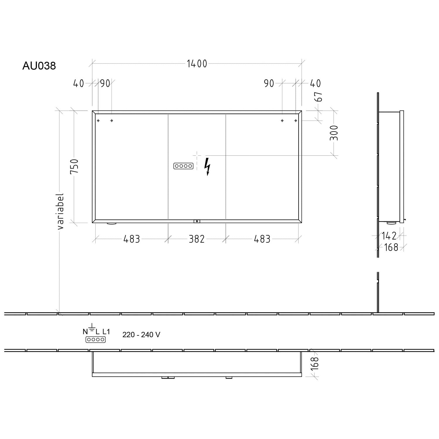- durchgehende LED-Waschplatzbeleuchtung 6,84 Watt