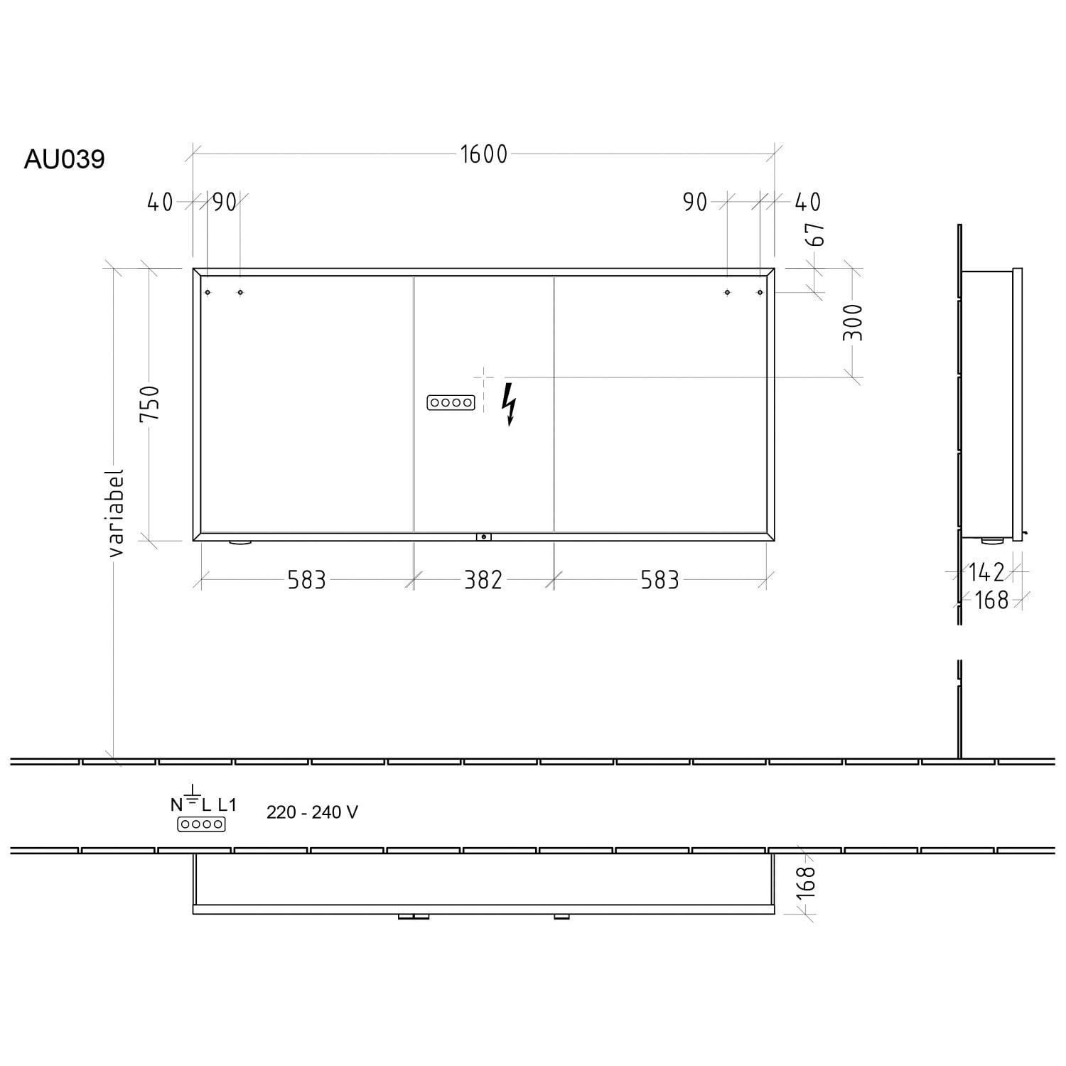 Sanipa Reflection Melamin-Spiegelschrank MILO 160 mit 3 Türen
