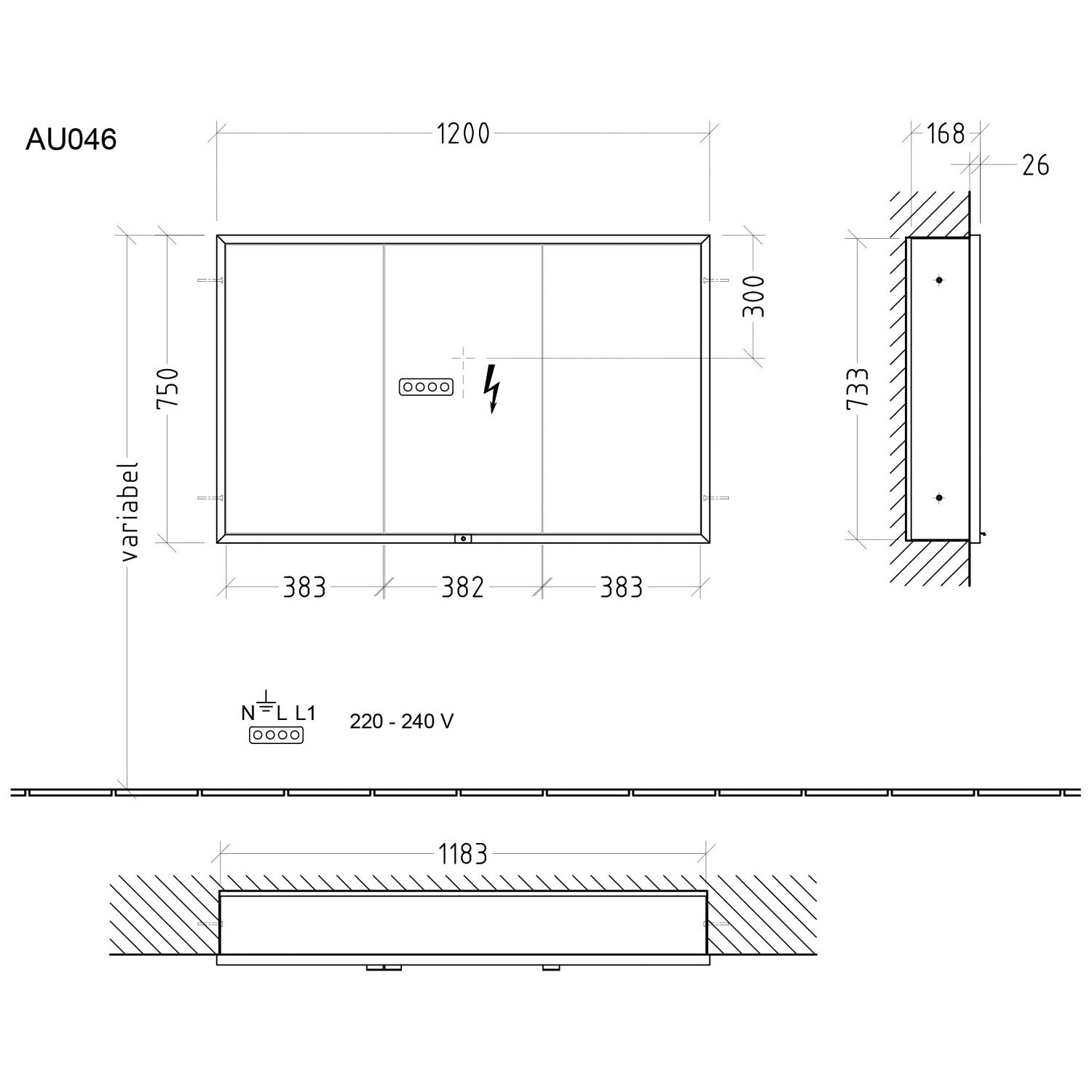 - 3 Spiegeltüren (beidseitig verspiegelt)