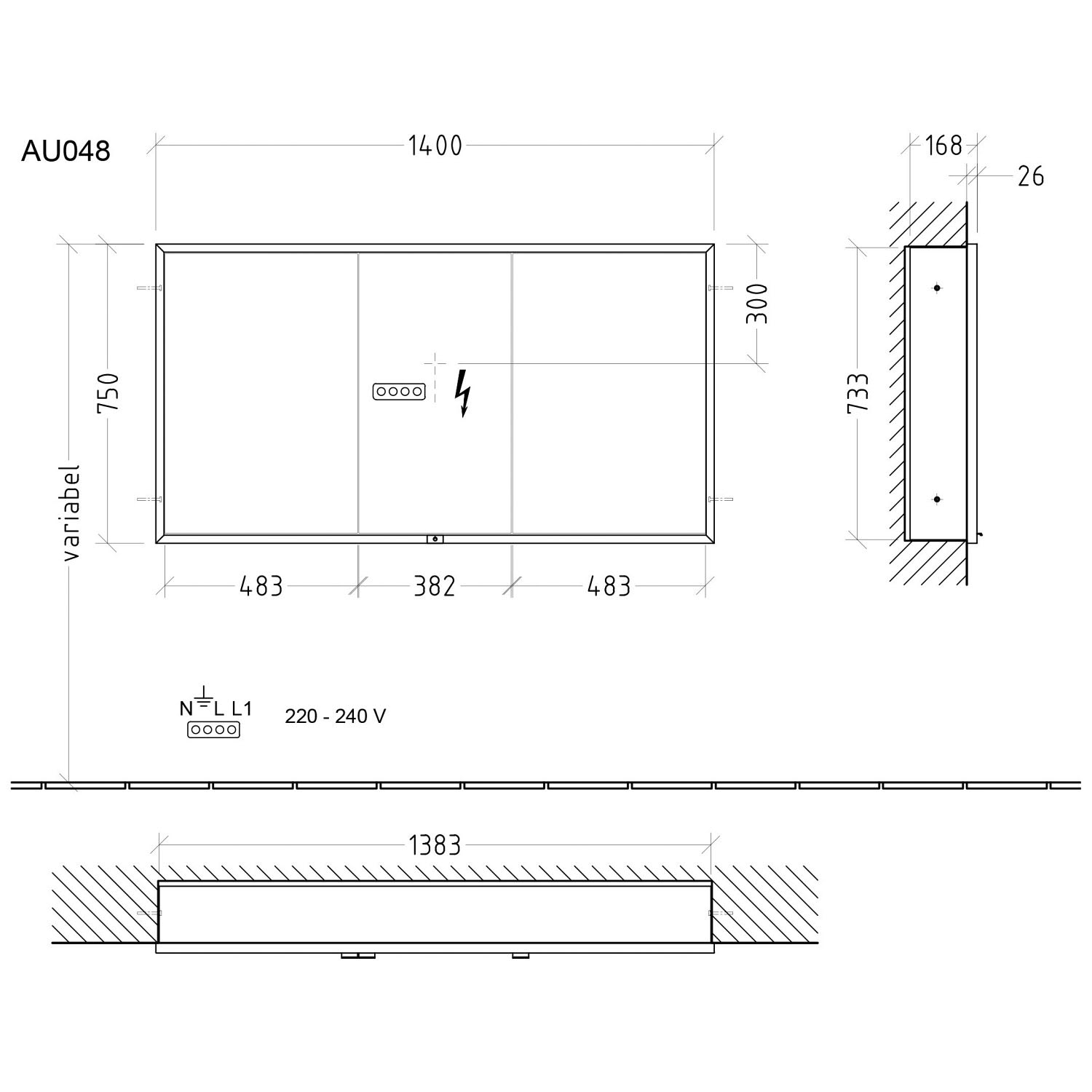 - 3 Spiegeltüren (beidseitig verspiegelt)