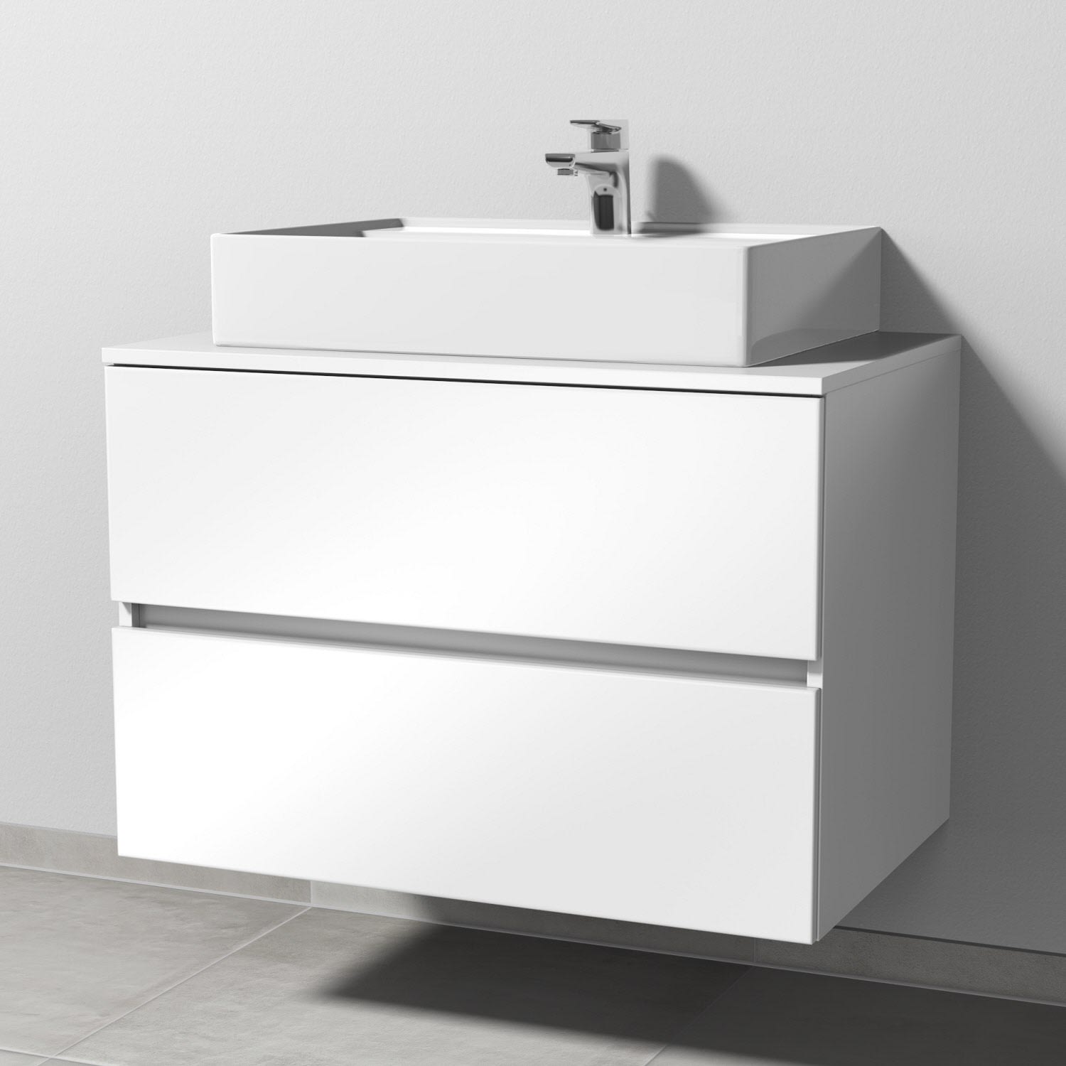 Sanipa Solo One Angular Keramik-Set 80 cm mit Keramik-Waschtisch und Waschtischunterbau mit 2 Auszügen