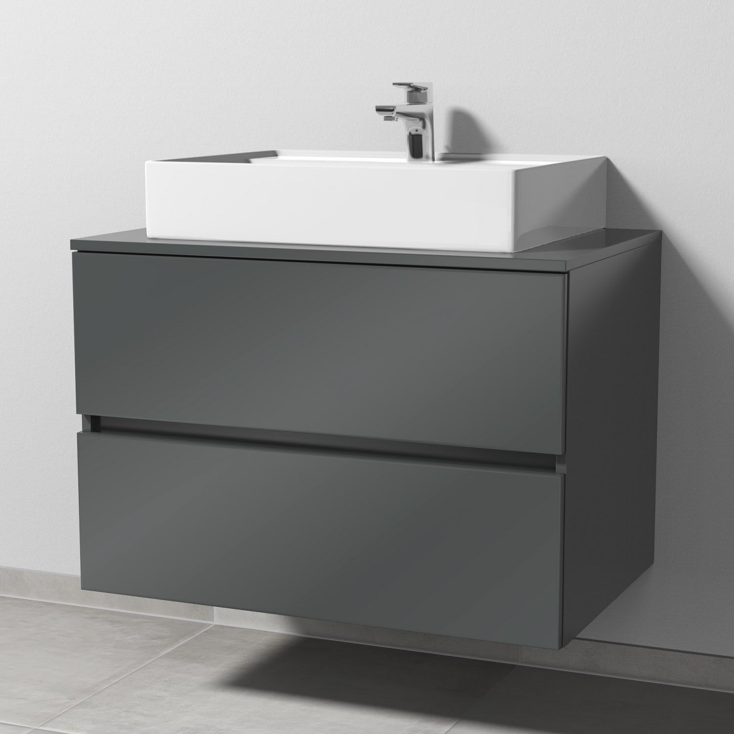 Sanipa Solo One Angular Keramik-Set 80 cm mit Keramik-Waschtisch und Waschtischunterbau mit 2 Auszügen