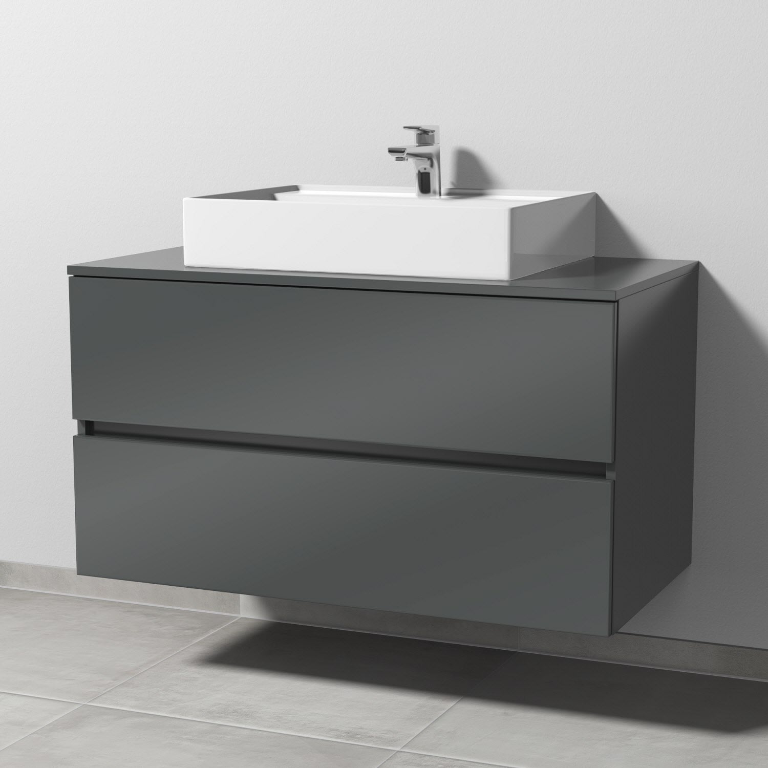 Sanipa Solo One Angular Keramik-Set 100 cm mit Keramik-Waschtisch und Waschtischunterbau mit 2 Auszügen