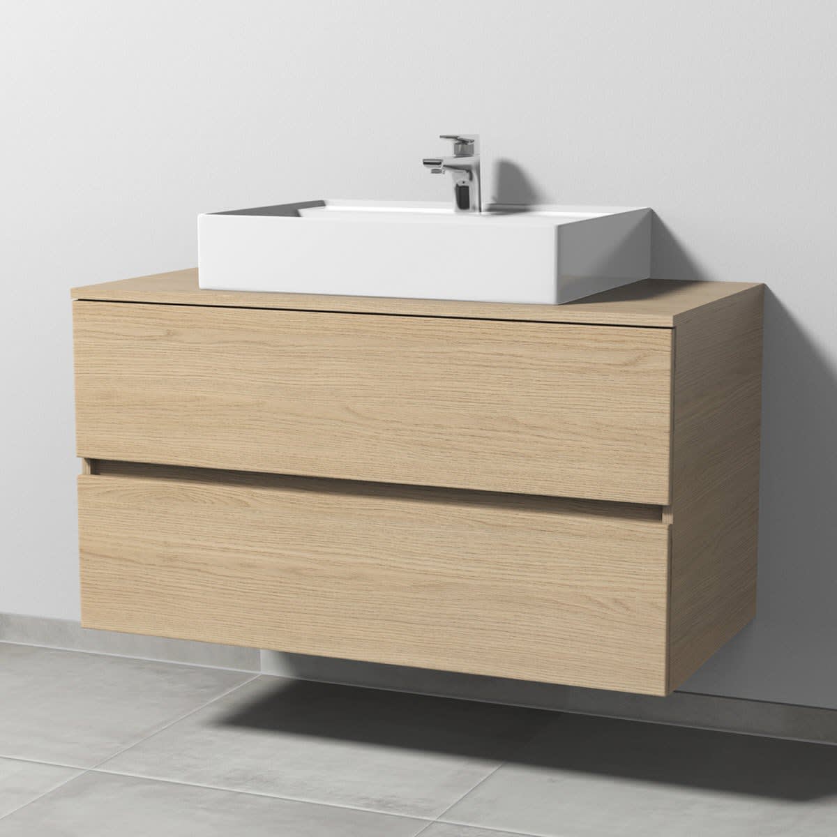 Sanipa Solo One Angular Keramik-Set 100 cm mit Keramik-Waschtisch und Waschtischunterbau mit 2 Auszügen