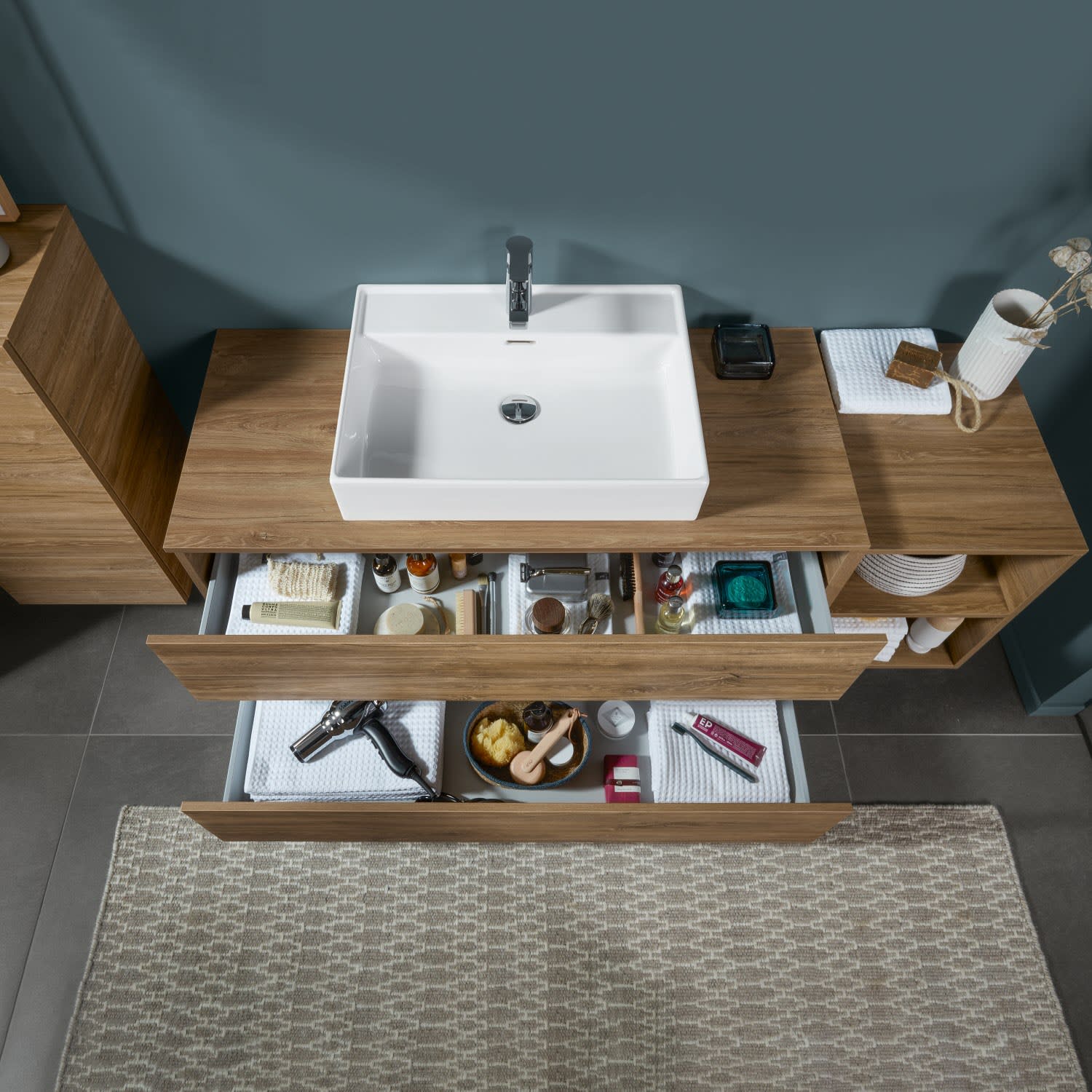 - Auszüge ohne Siphonausschnitt für reichlich Stauraum