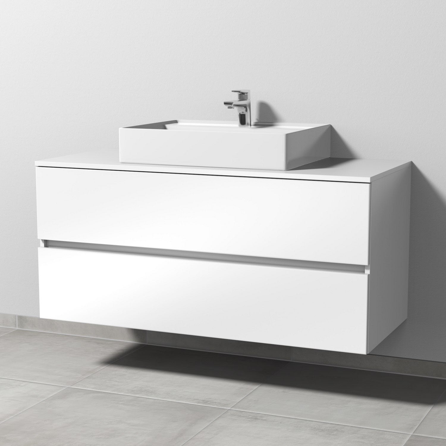 Sanipa Solo One Angular Keramik-Set 120 cm mit Keramik-Waschtisch und Waschtischunterbau mit 2 Auszügen