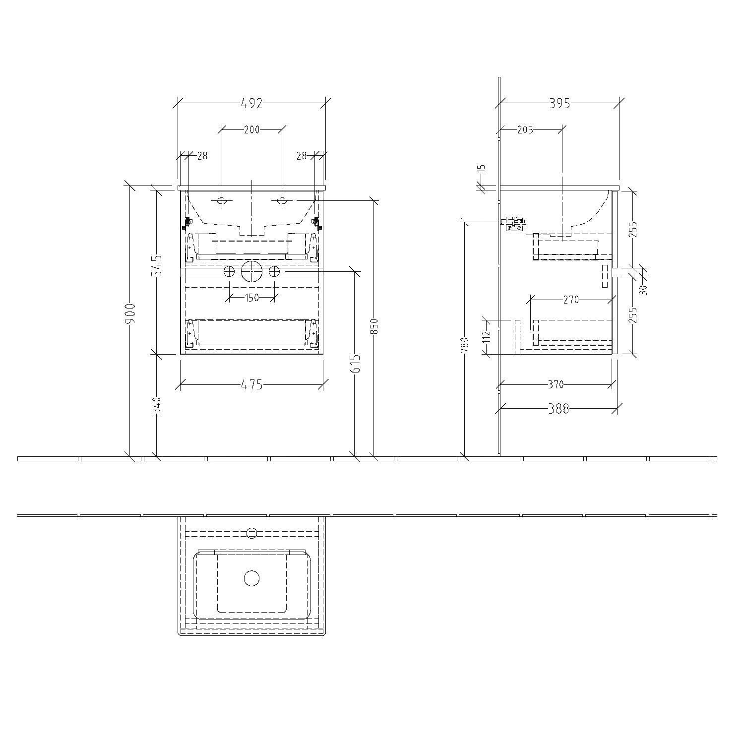 - oberer Auszug mit eckigem Siphonausschnitt